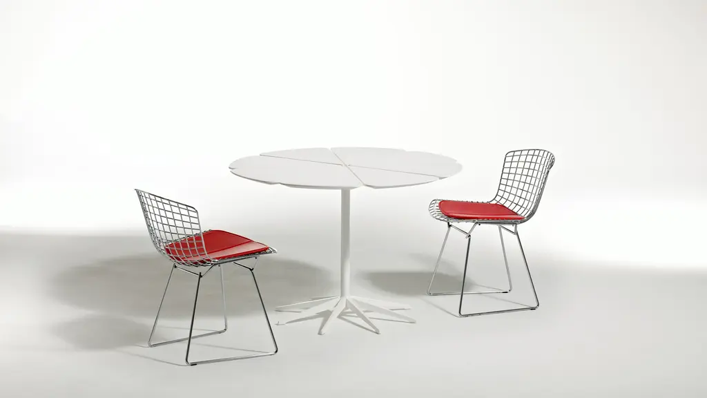 Richard Schultz cites Queen Anne’s Lace as his inspiration for this delicate outdoor table with its flower-like top sprouting from the elegant pedestal base. Each “petal” expands and contracts independently, ensuring stability in changing weather.
