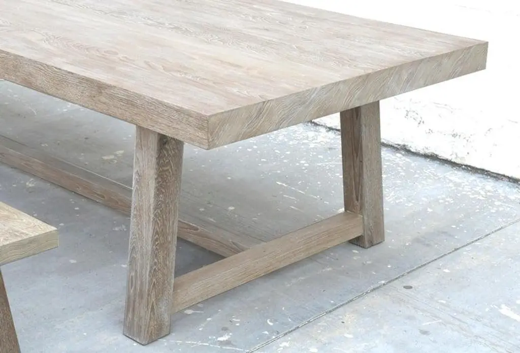 Designed to withstand any climate, this teak dining table can be used either indoors or outdoors. Seen here in 144" x 46" with a 3 1/2" table top and 3 3/4" x 3 3/4" legs We use only traditional carpentry techniques, no nails or metal fasteners of any kind, just mortise and Tenon construction reinforced with hand-cut wooden dowels.