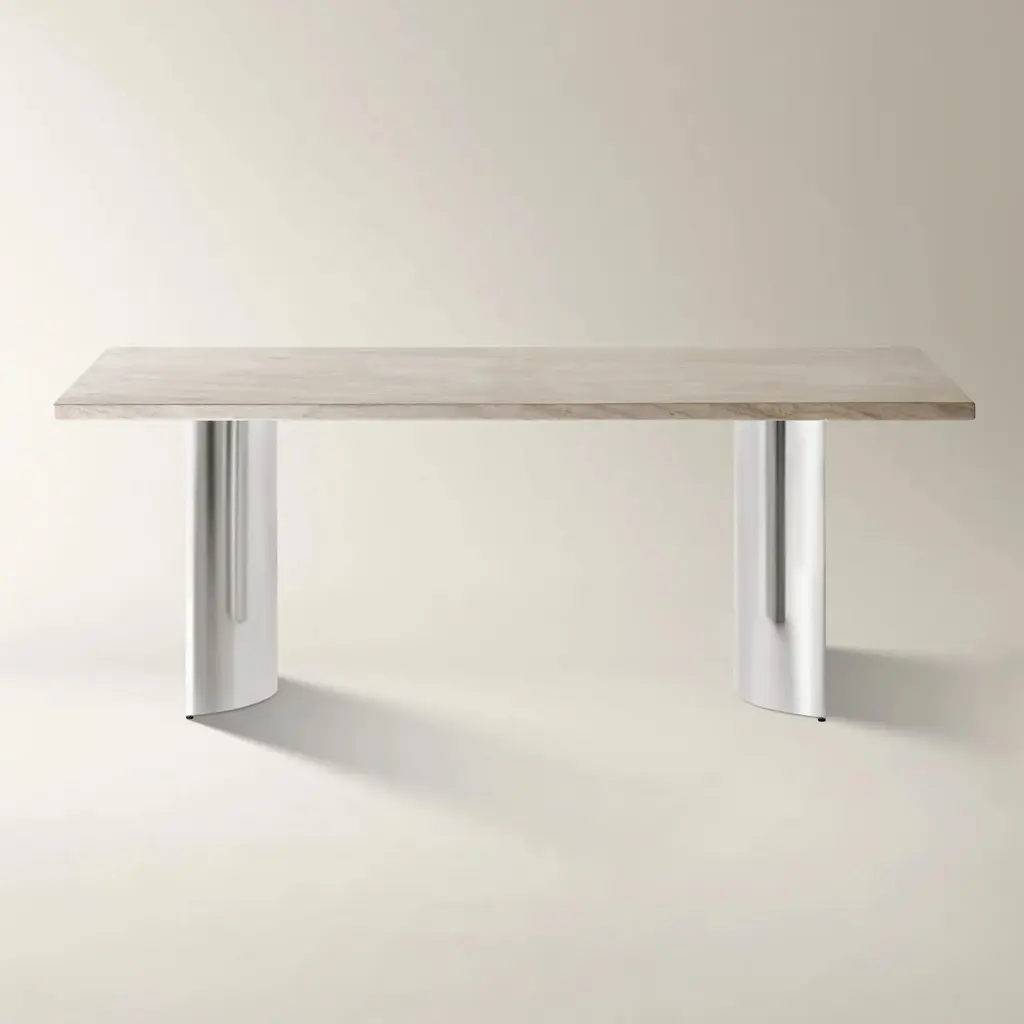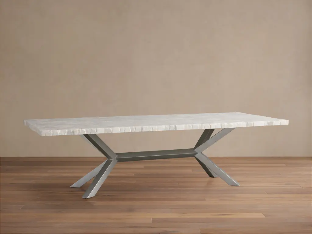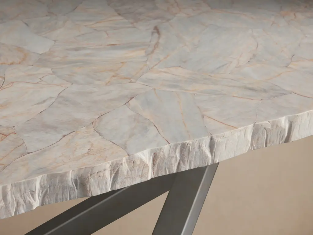 Our Petra Dining Collection is constructed from rare, naturally sourced materials, showcasing distinct, varying colors and textures, making each piece a true one-of-a-kind. Petrified wood tabletops cut from lengths of fossilized trees, white century marble or grey marble tabletops from remote regions of the Philippines are selected by hand and carefully mosaicked to form stunning surfaces.