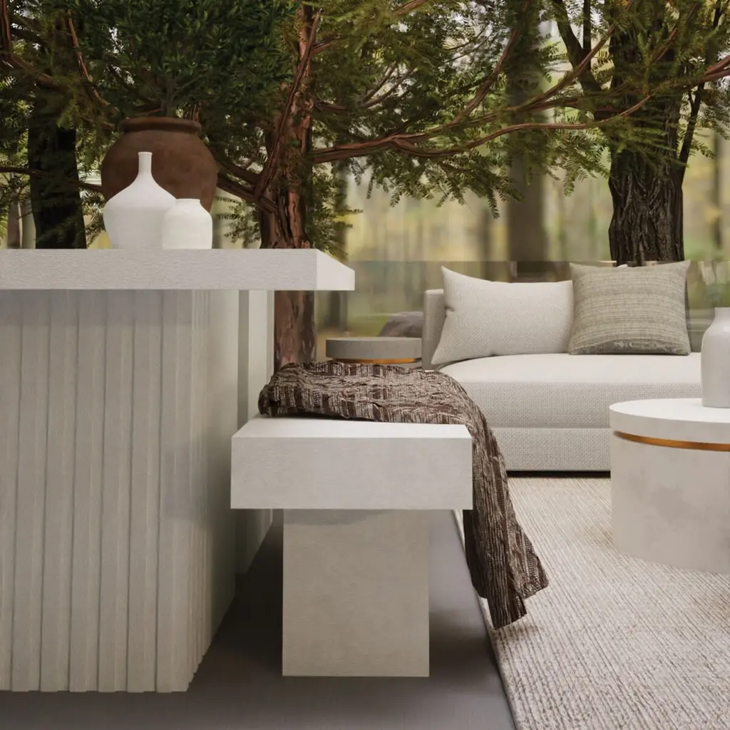 Discover the allure of the Philo Outdoor Rectangular Double Pedestal Dining Table —a masterpiece crafted with handmade lightweight concrete and adorned with nylon glides. Each piece from this collection is a unique creation, showcasing individual variations in color and veining that add character and charm. Resistant to the elements and suitable for both indoor and outdoor settings, these artisanal pieces require responsible care.