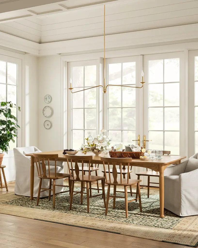 In a honey oak finish, we designed the Phipps Dining Table to add a modern-meets-traditional feel to your dining room and to tell the story of its craftsmanship. Handcrafted from honey oak, the turned details on the table make it an ideal centerpiece to your dining spaces.