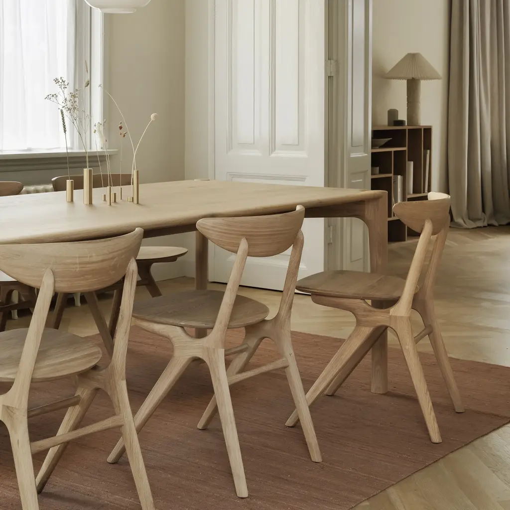 The PI Dining Table from Ethnicraft celebrates the natural beauty of wood by preserving its inherent strength, curves, and lines. Featuring a polished imperfect finish, each table is meticulously hand-finished to highlight the unique character of the wood. Designed by Alain van Havre, this sleek and stylish piece brings organic elegance and craftsmanship to any dining space. Highlights