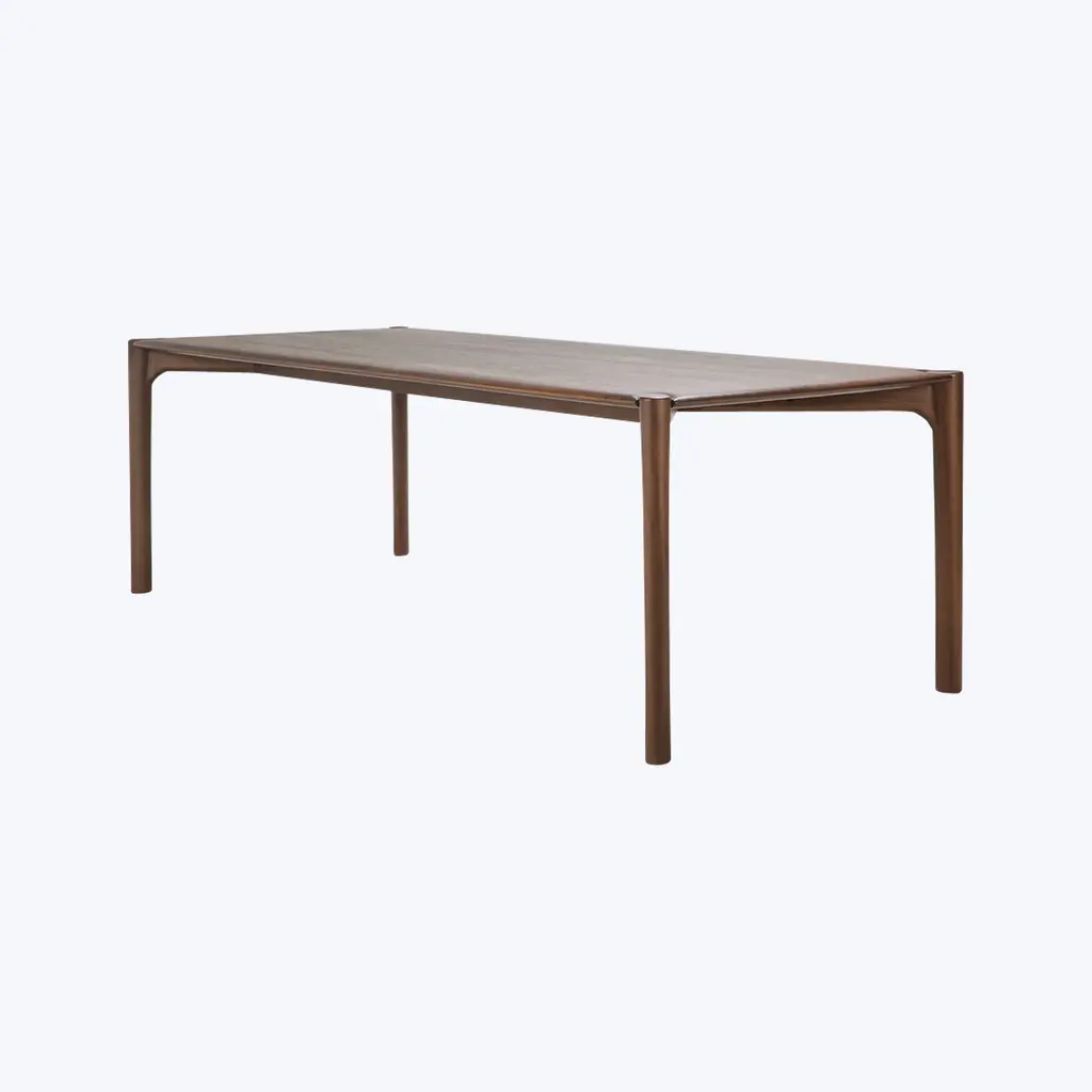 The PI Dining Table from Ethnicraft's PI collection celebrates the natural beauty of wood, emphasizing its organic strength, curves, and lines. Crafted from solid oak or teak, this sleek yet stylish table is designed to highlight the inherent imperfections of the material, making each piece unique. Available in multiple sizes, this table provides ample space for dining while maintaining a light and airy presence in your room. The table’s polished finish enhances the wood's character while preserving its natural form. Designed by Alain van Havre, the PI table combines modern minimalism with the raw elegance of nature. Each table is meticulously finished by hand, ensuring that every piece showcases the individual character of the wood. The soft beige color of the oak brings warmth to any space, making it versatile enough for both contemporary and traditional interiors. Crafted in Serbia, the PI table is a timeless addition to your home.