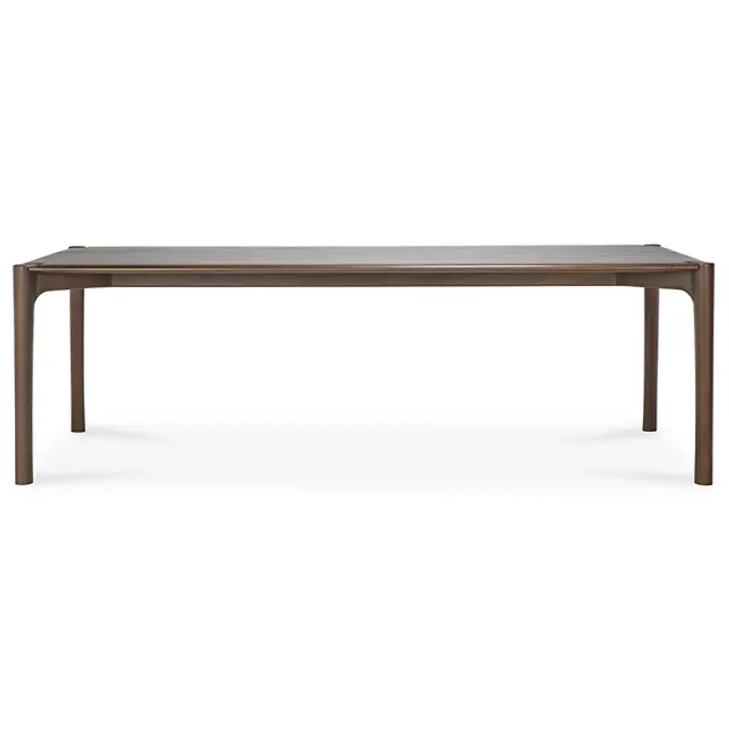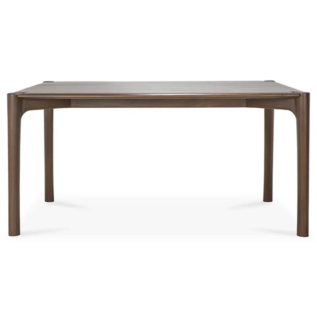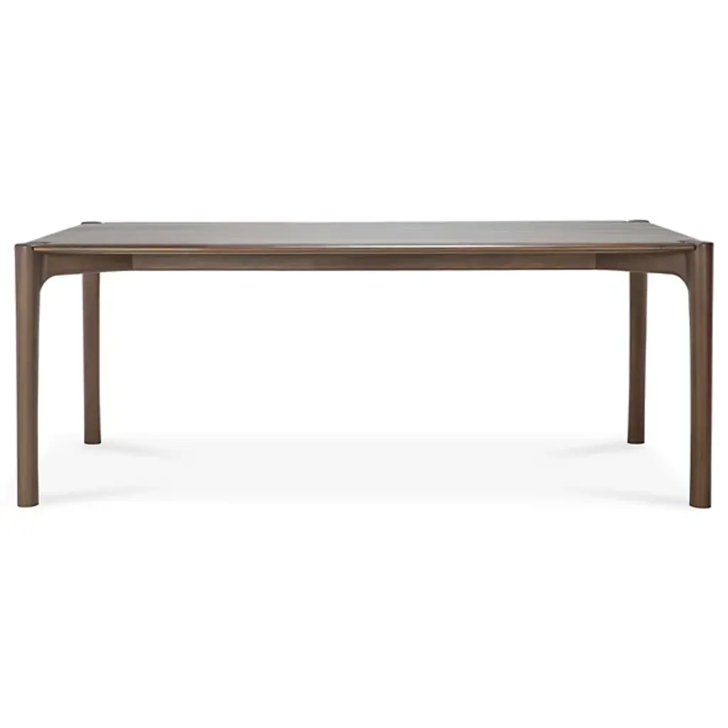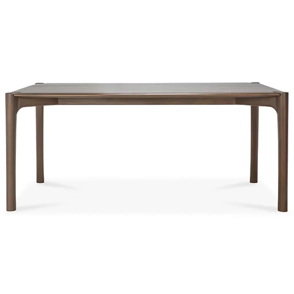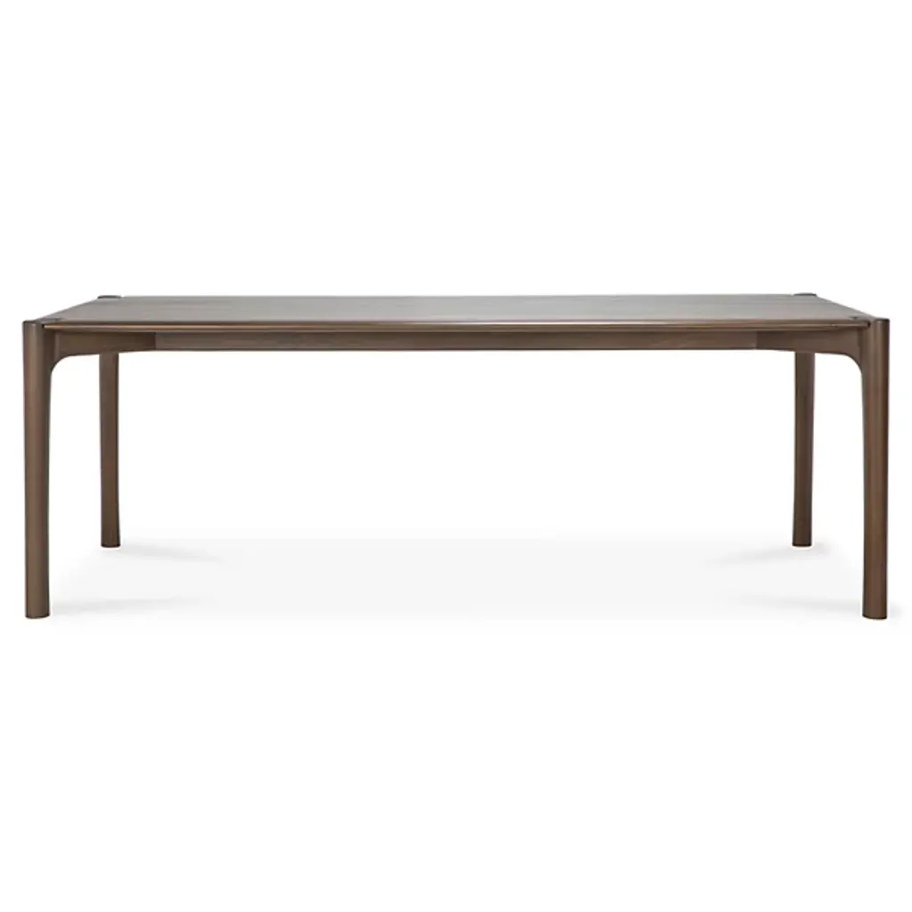 The PI Teak Dining Table from Ethnicraft takes on a streamlined silhouette that holds your attention. This table is intentionally crafted from teak wood sourced from responsibly managed forests. The granular patterns of the natural wood add organic depth and provide distinction. PI's rectangular surface forms a spacious stage for festive meals and casual dinners alike. Built to last, this dining table complements artisanal modern aesthetics in open-concept living spaces.