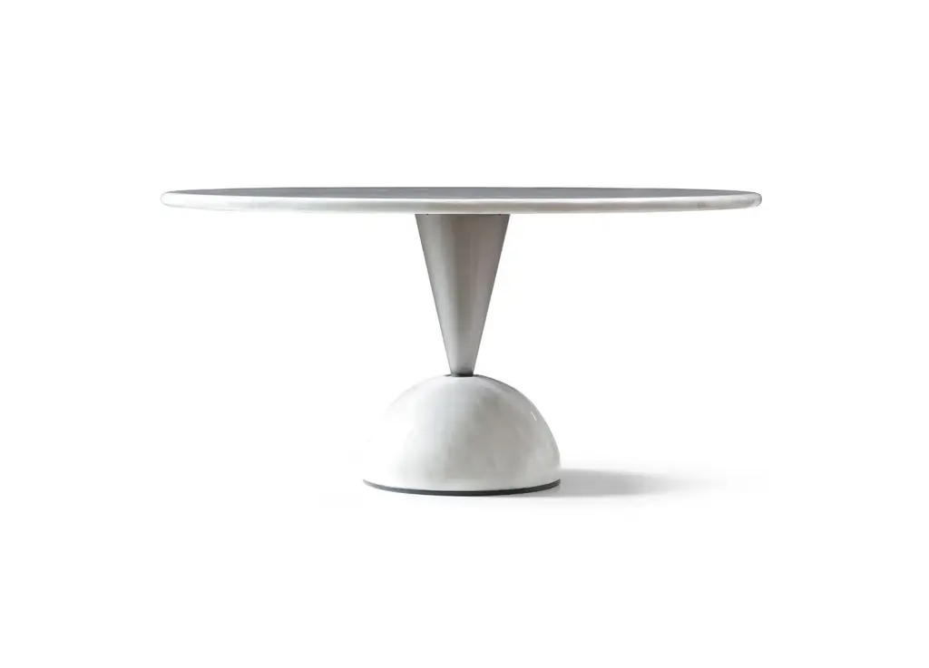 The Pia Round Dining Table is a masterpiece of modern design, combining high gloss white marble with a brushed black stainless steel conic base. The table’s round marble top exudes a sense of luxury and sophistication, with its smooth, reflective surface creating a striking focal point in your dining area.