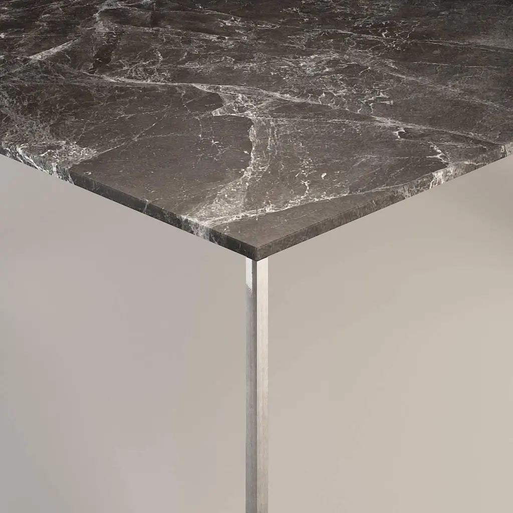 Piero Rosa Tea Dining Table by Fred and JuulDimensions: D 160 x W 160 x H 74 cm.Materials: Rosa Tea marble and bronze.Available in Rosa Tea or Emperador Grey marble tops. Available in bronze or aluminum legs. Custom sizes, materials or finishes are available. Available in two different sizes: 140 x 140 x 40 cm and 160 x 160 x 74 cm. Please contact us.The cast metal legs, with their stepped profiles and diagonal position, appear differently from each viewing angle: sometimes slender, then massive, but also polished and at other times rough. Here depicted with tops in two different marbles, both quarried in Turkey - Rosa Tea, which presents with a vivid pink background accented with lighter, as well as darker patches and many bordeaux or gold colored veins that create an intricate pattern. Emperador Grey, which presents with a grey background accented with darker gray patches and white smokey motions that give the stone a sophisticated look.Fred&Juul, short for Federico Minarelli and Julie Janssen, are two architects who decided working as architects isn’t for them. It was when designing custom furniture for their clients and developing it with the amazingly skilled local artisans that they truly found joy in their work. So, in 2012 they decided to solely focus on that and launched their first lighting and furniture collection. With the exception of the renovation of the old Tuscan farmhouse that would become their home and studio, a labor of sorrow, but mostly love (see the result on the press page!).What sets them apart is how they see and use their materials of choice: bronze, brass, wood and stone. Their designs value the inherent nature of these materials and how they are meticulously crafted, like the grainy, clouded surface of their Raffaele light in sandcast brass or the juxtaposed Oak grains in the marquetry of their Maurits table. Starring all these aspects in the story of a piece, is what makes it unique and last.Over the years they have increasingly worked with interior designers on custom pieces for high end projects all over the world, thanks to their attention for detail, refined aesthetic sense and collaboration with the best highly specialized craftsmen Tuscany has to offer.