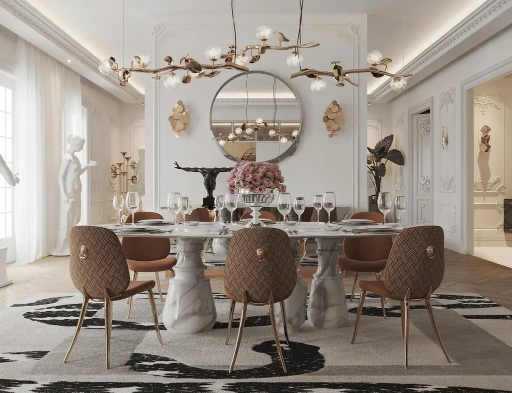 Playing with function and sculptural form, Pietra dining table shapes a timeless experience through its classical aura and finest Nero Marquina black marble. Reminding the renaissance era, its oval top gently lies in two robust marble columns, each one conceived from solid blocks hand-sculpted and turned to create different details for additional texture. A noble material carved in Boca do Lobo workshops, conceiving a soulful statement dining table ideal for elegant and refined dining rooms. Designed for eight seats, the contemporary feel of Pietra is effortlessly stylish and it is suitable for indoor or outdoor use.
