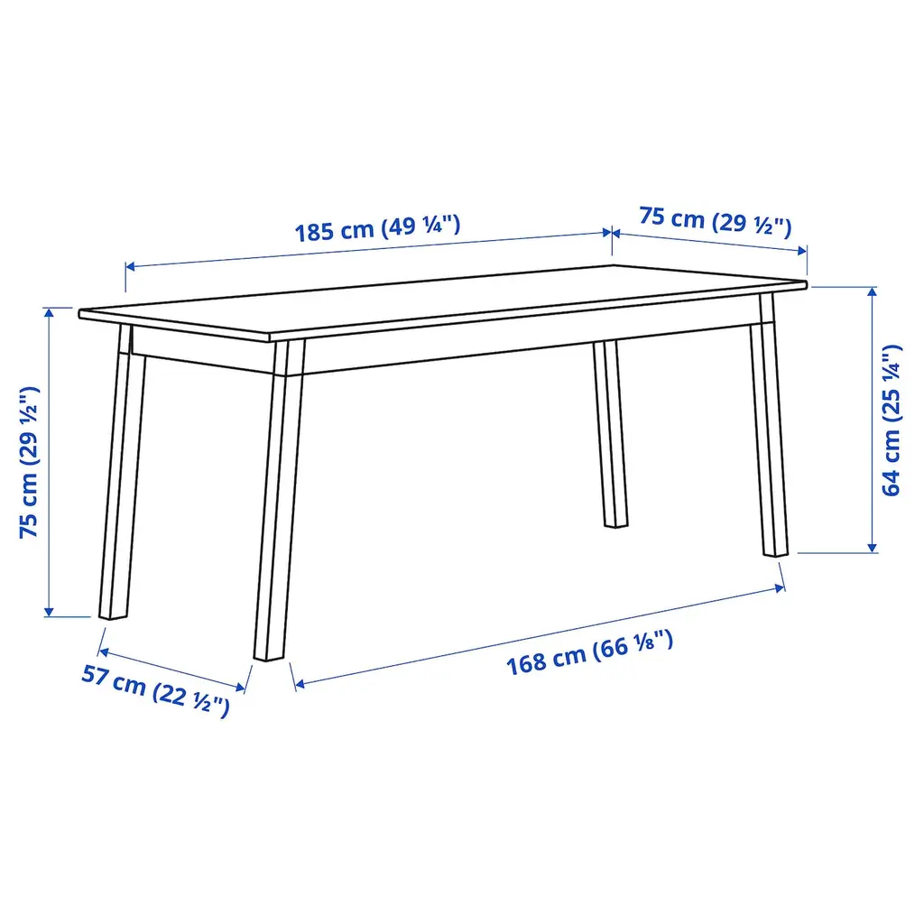 PINNTORP Table - light brown stained/white stained 72 7/8x29 1/2 ". This spacious table seats 6 and offers enough space for the family and different activities at the same time. The sturdy solid wood frame is stained in a fresh white color to brighten up on any gloomy day.