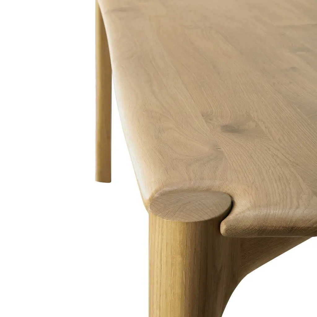 Oak is prized as much for its distinctive figuring as for its durability and resistance to scratches. A medley of smooth planes and rounded edges, this dining table was finished by hand to show off the wood's timeless beauty.