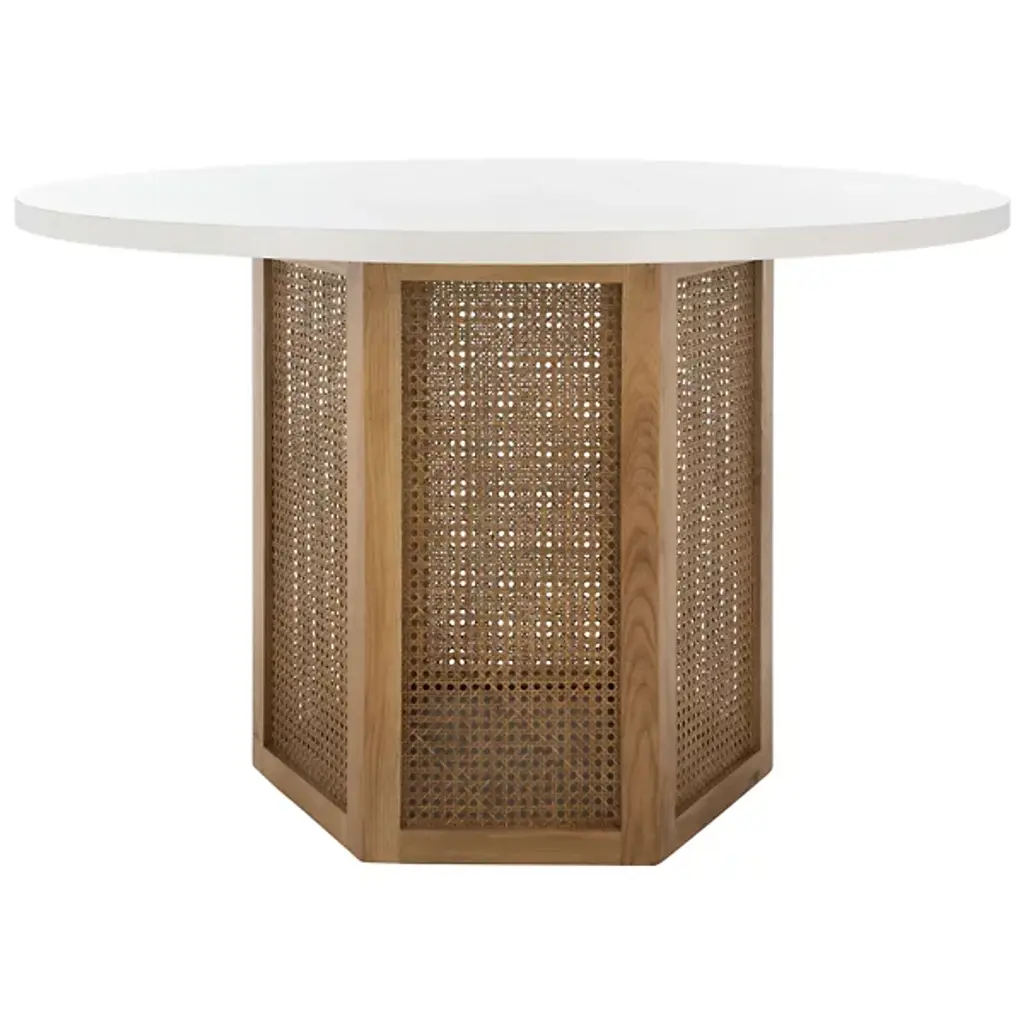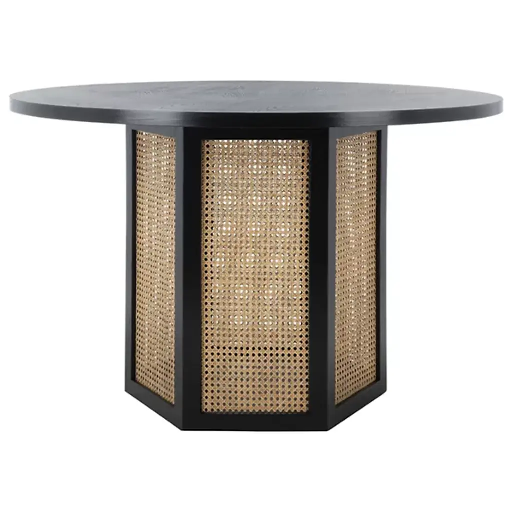 The Placida Cane Dining Table from Alder & Ore is an exquisite table that brings a rustic modern design to your home. Crafted from durable ash and MDF, it features a circular tabletop that creates a welcoming and communal atmosphere. The table’s linear framework forms a pleasant contrast to the smooth top, providing a distinctive, meshed appearance that is both contemporary and elegant. Placida gives your dining area a natural touch.