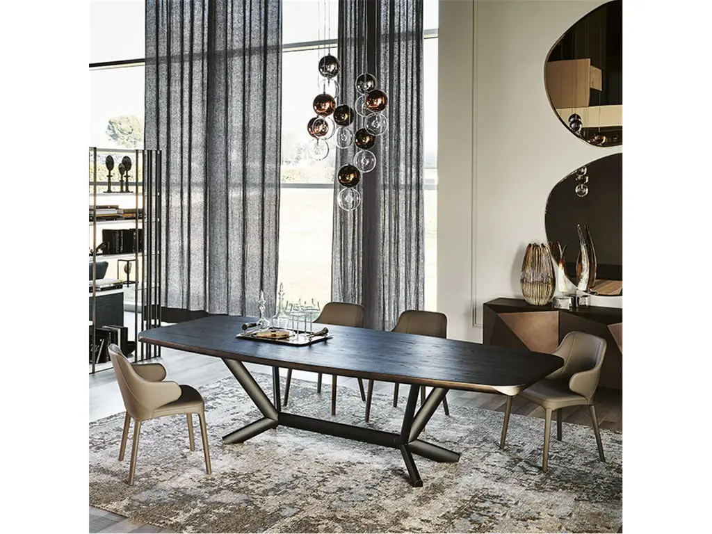 Add a sculptural style to your contemporary dining room with the eye-catching Planer wood dining table by Cattelan Italia. The base features a combination of clean lines and sharp angles for a geometrically inspired touch. With a spacious top, it provides plenty of room for multiple people to eat and socialize comfortably. Contrasting finishes stand out against one another for added appeal. Manufactured in Italy by Cattelan Italia, the Planer round wood dining table is available in four sizes. Various wood finishes are available for the top while its base comes in different embossed lacquered steel finishes. Versions are available with beveled edges and rounded edges