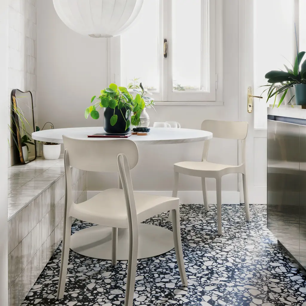 Planet Table with central pedestal base. The central pedestal base with a weighted metal plate guarantees maximum stability. Comfort is ensured for all the diners......even when they are in an odd number! The planet is a modern and elegant table perfect for the kitchen and the dining room. Features