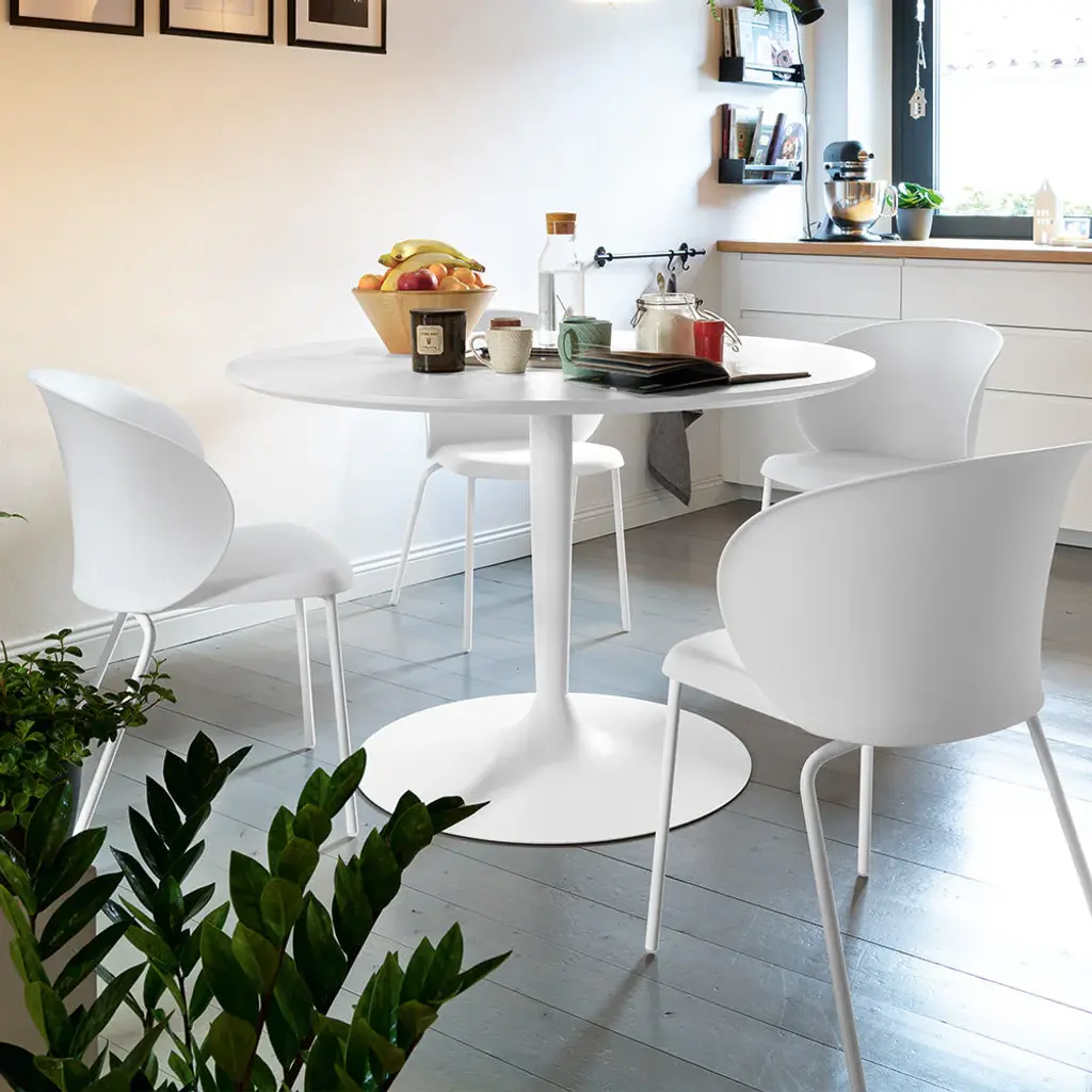 Planet Table with central pedestal base. The central pedestal base with a weighted metal plate guarantees maximum stability. Comfort is ensured for all the diners......even when they are in an odd number! The planet is a modern and elegant table perfect for the kitchen and the dining room. Features