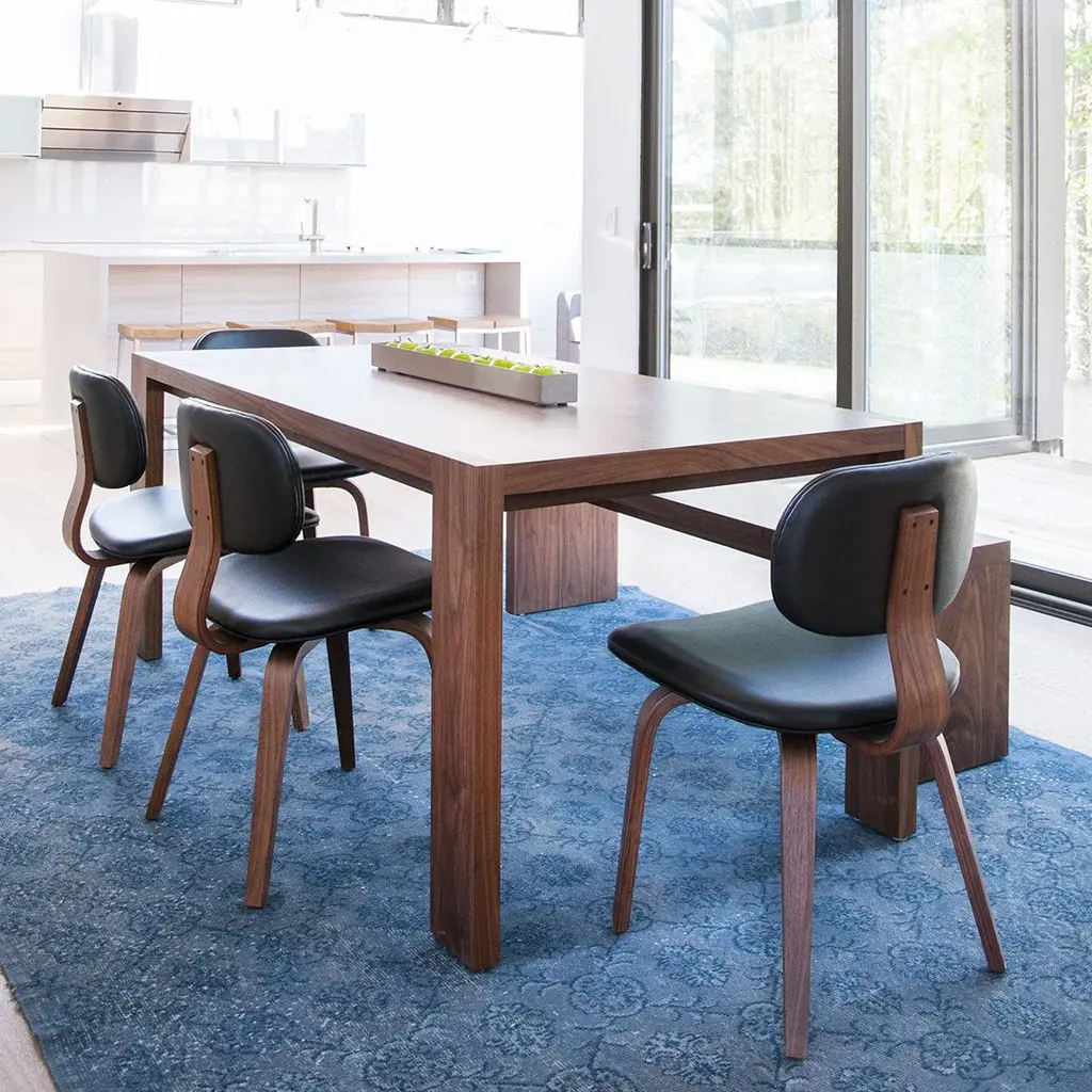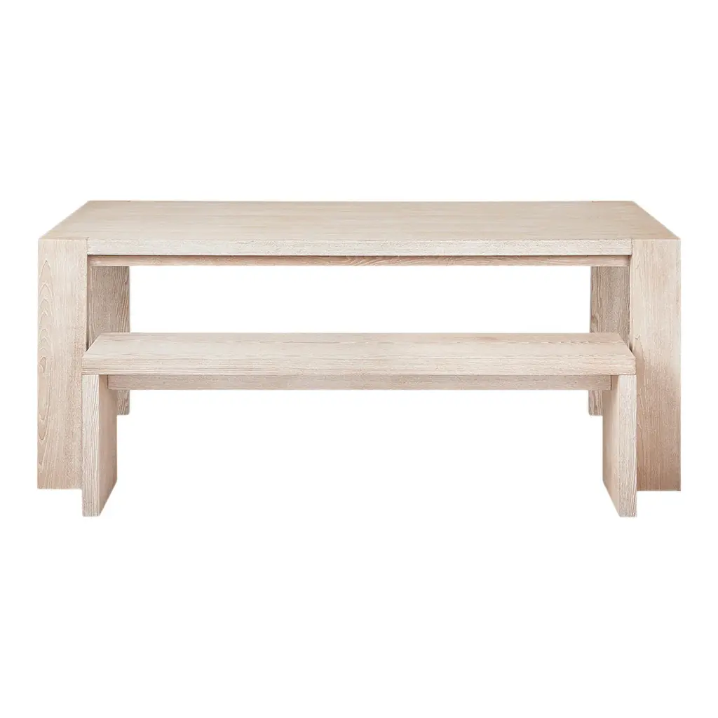 The Plank Dining Table balances the warmth and utility of the traditional harvest table with the elegant details of modern design. The table’s simple construction spotlights the organic grain of the wood, especially where the solid end grain of the legs sits flush with the top, creating a surface that looks striking in walnut or white wash ash. With seating for up to six people, Plank creates a warm and welcoming space for meals, homework, crafts and other activities. Matching, nesting bench sold separately.