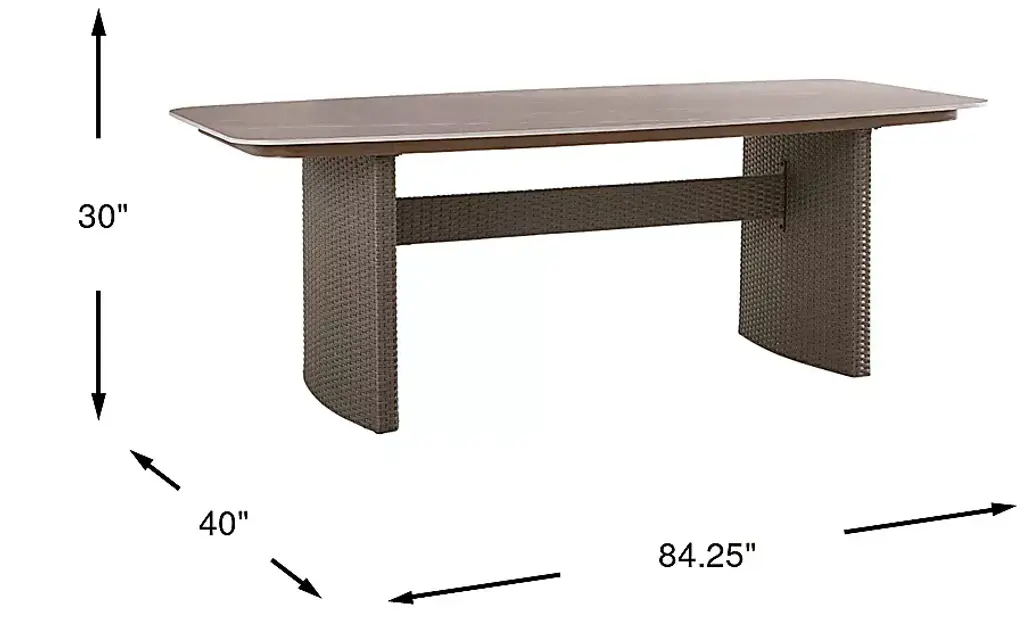 Waves crashing, seagrass swaying, the scent of the boardwalk warming in the sun... the Point Reyes collection invites beachy relaxation to your door whether you live 100 miles from the ocean or one step from the shore. An inspired outdoor classic, this dining table is crafted with a rust-resistant aluminum frame in rich brown with a gorgeous 84" sintered stone top. A stunning double pedestal base gives this piece the look of a boat gliding across glassy seas.