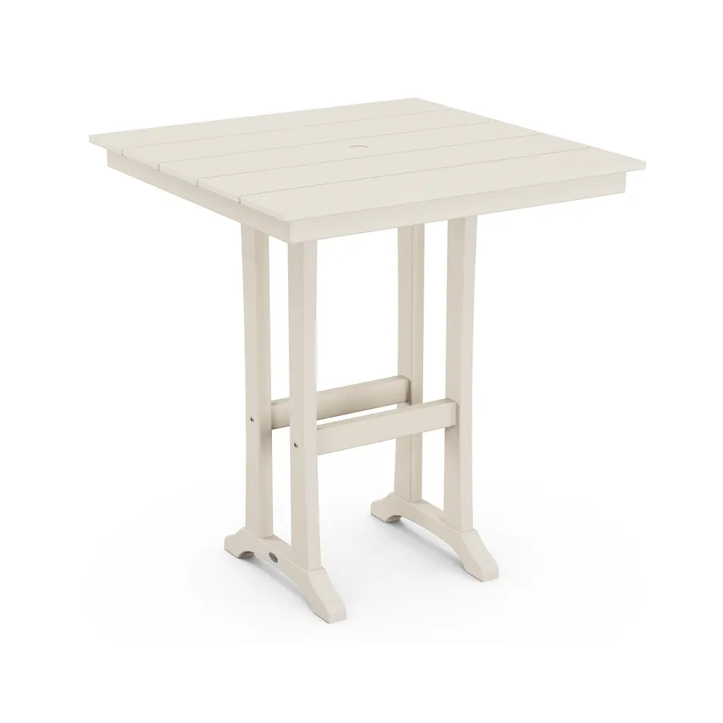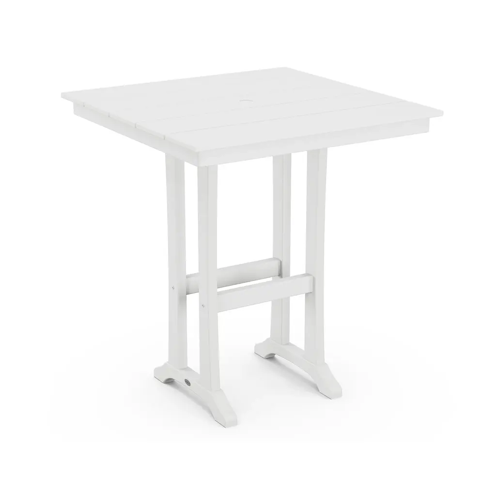 Elevated seating provides a whole new enlightening perspective on your natural surroundings. Our Farmhouse 37" Bar Table provides the quintessential perch to enjoy your backyard garden while offering a cozy location to dine and relax in equal measure. Made in the USA from genuine POLYWOOD lumber and marine-grade hardware, this trestle-style bar table provides a carefree outdoor dining experience unlike any other. It features a fade-resistant, weather-resistant and easy to clean construction, perfect for leaving outside all year round. Ignite the barbeque, grab a bottle of wine and ease into a relaxing intimate dinner at a Farmhouse Trestle 37" Bar Table of your own.