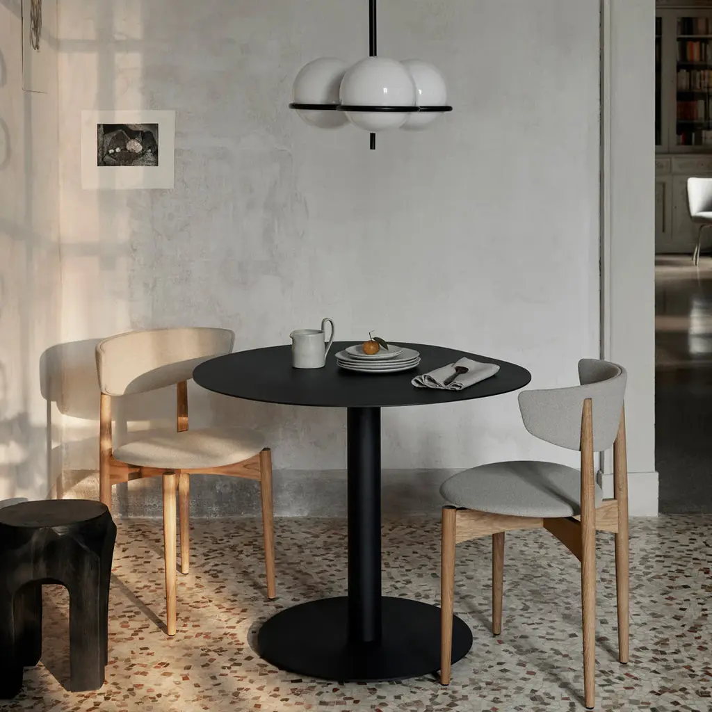 Bring an element of calm to your indoor or outdoor space with the Pond Dining Table. Featuring an organically-shaped tabletop that forms an irregular, imperfect circle, the table is completed by a single, discreet column at the base. Made entirely from durable, powder-coated galvanized steel and with adjustable feet that allow you to align the base plate on uneven surfaces, the Pond Dining Table is ideal for use on a balcony, terrace or in the kitchen. The table arrives flat-packed.
