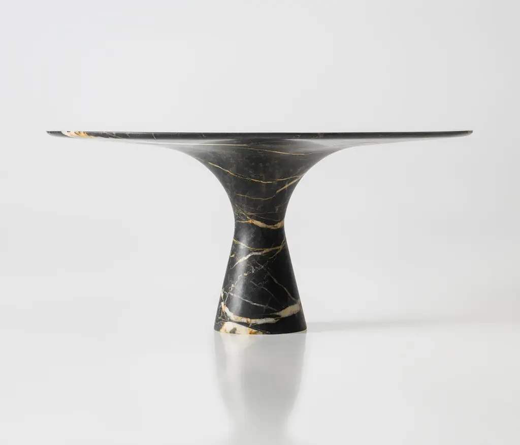 Port Saint Laurent Refined Contemporary Marble dining table 180/75Dimensions: 180 x 75 cmMaterials: Port Saint LaurentAngelo is the essence of a round table in natural stone, a sculptural shape in robust material with elegant lines and refined finishes.The collection consists of a round/oval dining or conference table, side tables and lower tables.Suitable for both indoor and outdoor use!All tables are made by order and finished by hand to be sure that the tabletop and base become one pieceThe basic collection consists of 9 different marbles and different standard dimensions, however on request we make to measure.Almost any size or marble is possible!All tables are signed and numbered (the low and side tables are only signed).All tables are impregnated with Lithofin Nanotop. This protection is not visible and the marble keeps its natural look and feel. With the delivery of every table, a maintenance set of Lithofin is included.The production time is standard 12 weeks.The design Angelo is the essence of a round or oval table in natural stone, it features a sculptural form, sturdy material, an elegant line and a refined finish. Two elements, table base and top, form one whole together. The bottom is one running curve from table foot to edge. The conical connection creates a stabile whole.To show the marble in it’s most expressive character, different finishes are possible (polished, honed, brushed, striped, sandblasted & brushed). The basic collection consists of nine different types of marble and different sizes. On request this design can be executed in almost any type of marble and on measure. This table is perfectly suitable in a housing, retail or office environment. As the table is supported by one central foot it creates a lot of flexibility in seating. Executed in hard variations of natural stone suited for external use, this design can be a perfect garden table or sculpture.Angelo M/R 130 : ø 130 x 75 cmAngelo M/R 160 : ø 160 x 75 cmAngelo M/R 180 : ø 180 x 75 cmAngelo M/O 210 : 210 x 135 x 75 cmAngelo M/O 250 : 250 x 160 x 75 cmAngelo M/O 290 : 290 x 160 x 75 cm The basic collection is available in the following marbles: Kyknos, Grafite, Travertino Rosso, grey saint Laurent, Picasso green, port saint Laurent, Travertino silver, Rosso Lepanto and Bianco Statuarietto in a honed finish. On request different sizes, finishes and marbles are possible. AwardsGood Design Award – Chicago, USA (2018)People’s Choice, AZ Award – Toronto, Canada (2019)German Design Award – Frankfurt, Germany (2020).