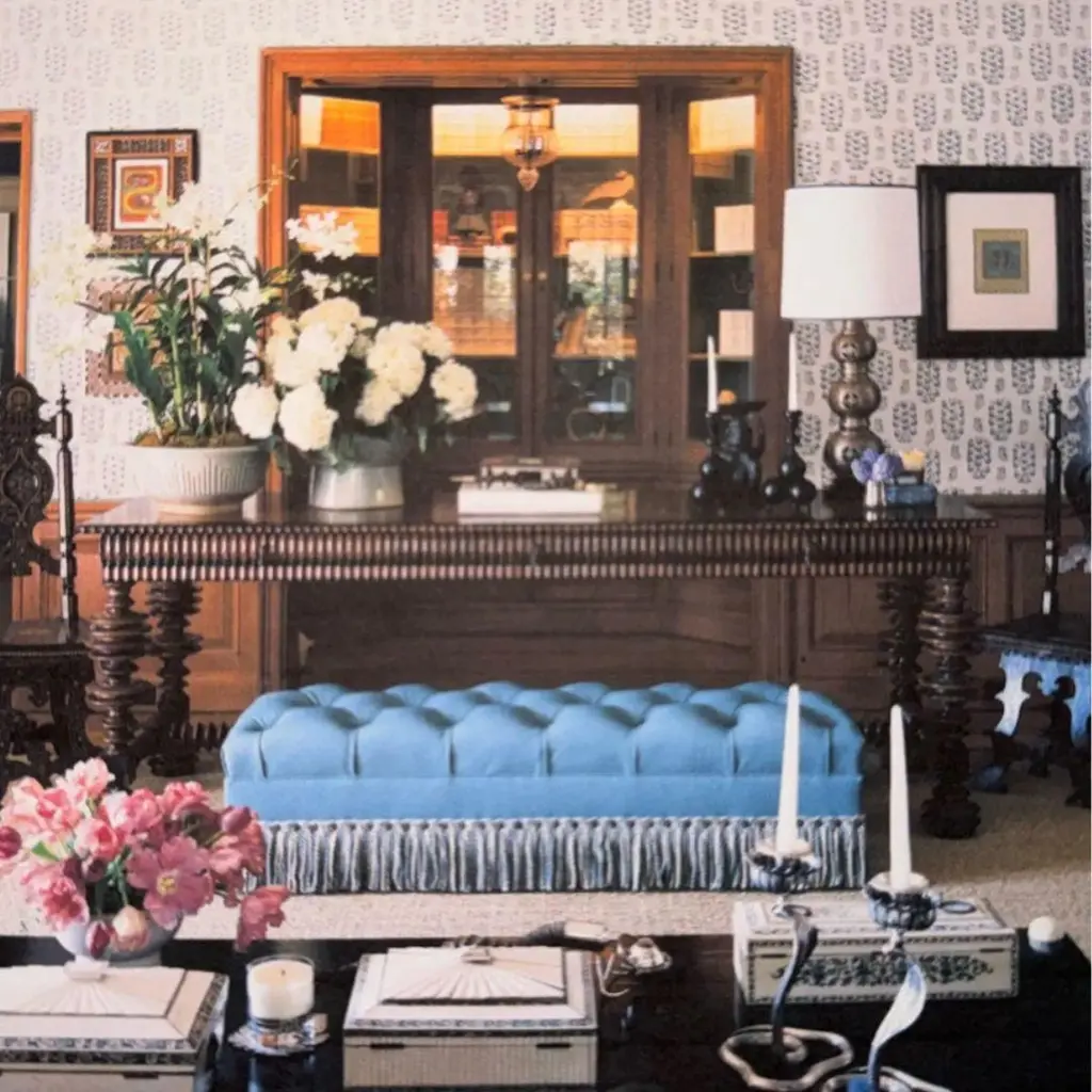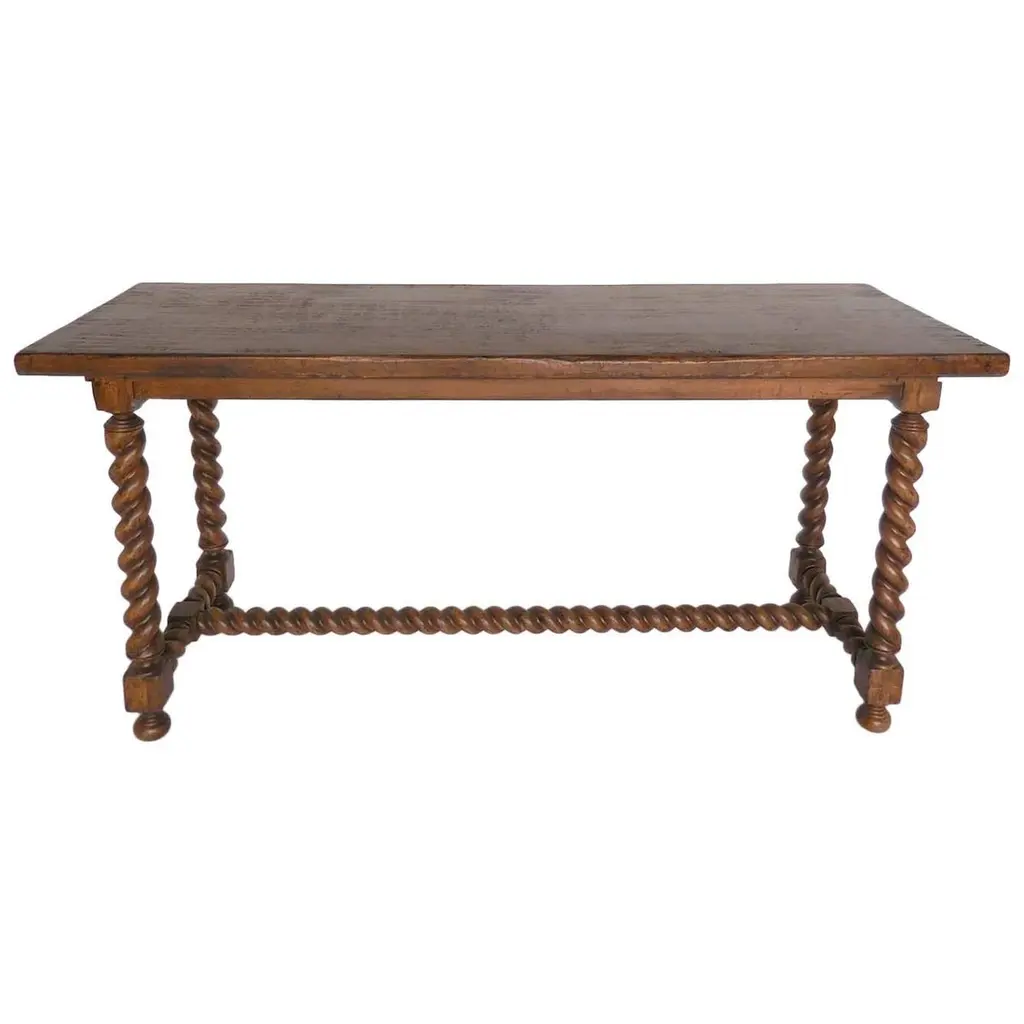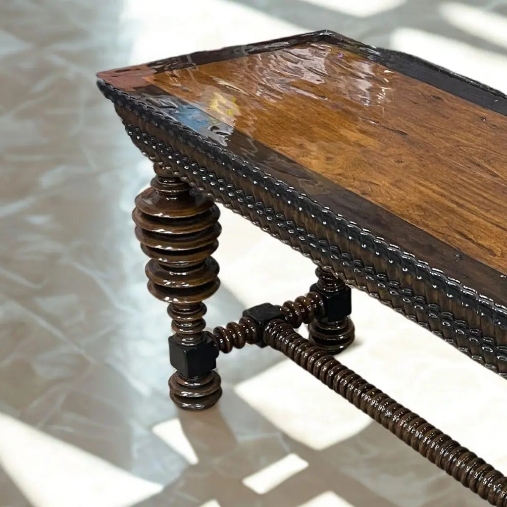 Martyn Lawrence Bullard's custom Portuguese library table.The design taken from a table found in a quinta in Lisbon, the intricate turning and carved details make this piece highly unusual and very decorative. This piece can centre a room, become a desk or even a fanciful dining table.