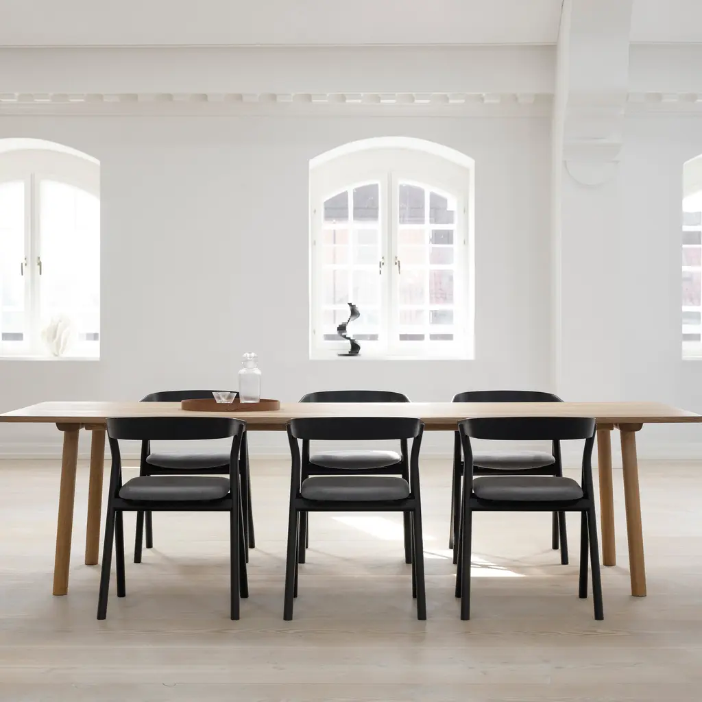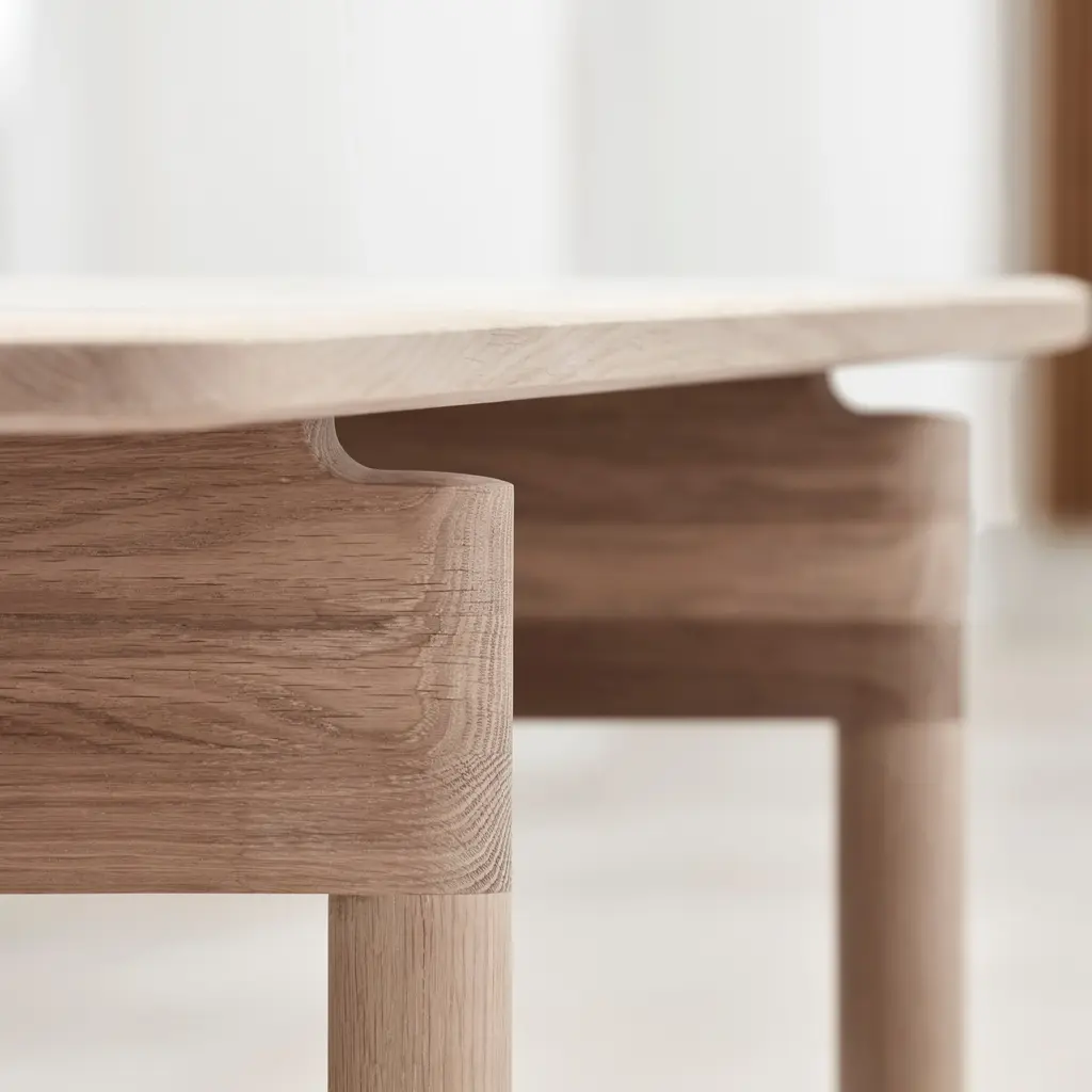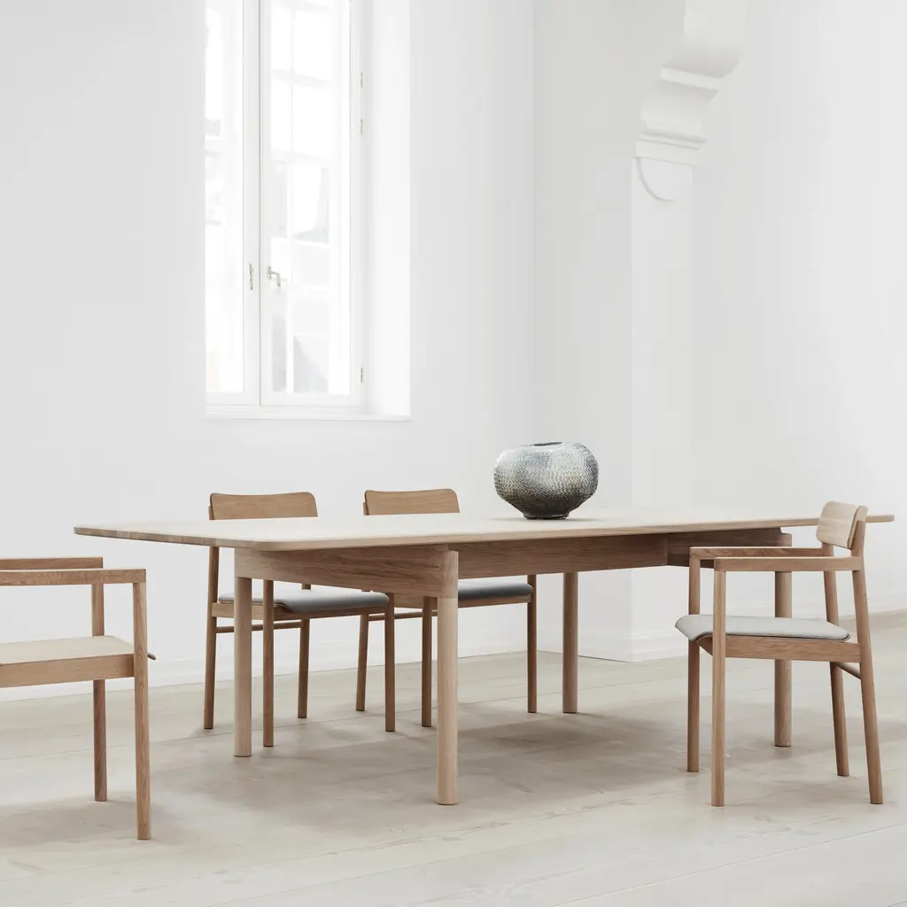 Displaying a robust personality, Post beckons with subtle edge detailing and soft corners inviting to be touched. As a dining or meeting choice, Fredericia’s solid oak table from Danish designer Cecilie Manz employs a visible framework with the tabletop appearing to lightly float above the I-shaped base.