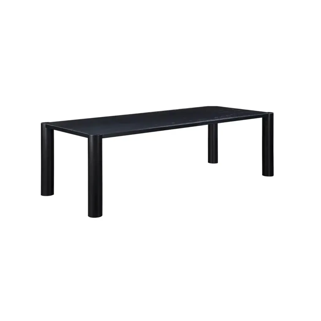 This expertly crafted table highlights the rounded posts on all four corners, providing a unique twist on a classic design. With a blackened oak frame and a semi-gloss finish, the natural grain patterns and variations in tone are showcased beautifully. Pairs perfectly with the Post Dining Bench