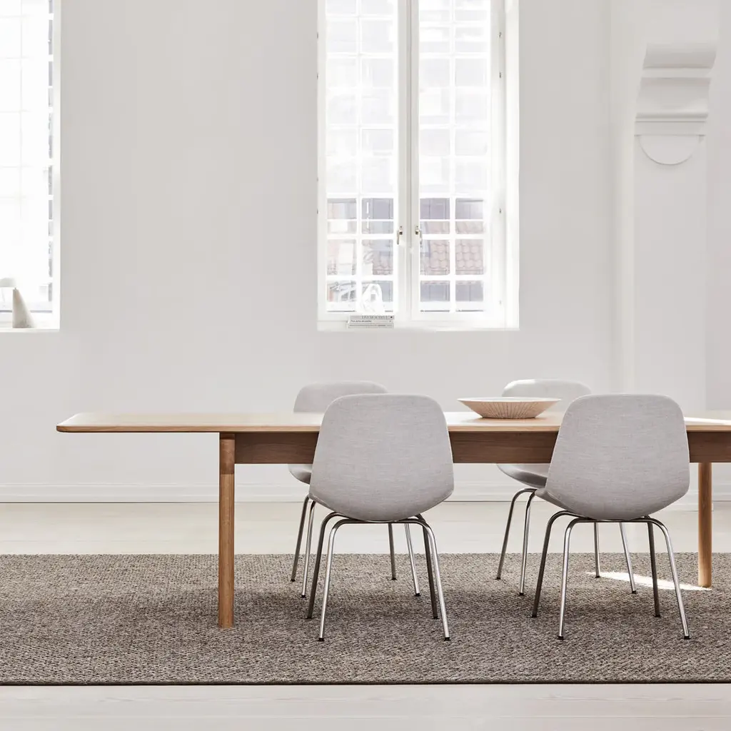 The Post Table illustrates the idea of eliminating anything extra to solely focus on the essential. A classic design expressed with modern minimalism, the table is made from solid oak, featuring loads of legroom in the wide space between the legs on either end. The table top is available in three lengths, supported by the same cylindrical legs as the Post Chair. Simplicity imbued with a sense of beauty is at the core of the Post Collection from Cecilie Manz. The name is a nod to the former home of the Royal Mail, renovated into our flagship showroom in Copenhagen. Clean, uncluttered lines are the signature traits of the Post Chair, boasting a solid wood frame that reflects our heritage of wood craftsmanship and appreciation for authentic materials. The Post Chair is upright and unassuming. The plywood seat and back are light yet sturdy, while the arms offer just enough support with a minimal use of space. Add to that the option of an upholstered seat in leather or fabric, and you have a subtle design that could easily fit into a residential setting, restaurant, café or corporate environment. Like the chairs, the Post Table's minimalist design makes it suitable for dining or meetings in corporate, private or hospitality settings. For designer Cecilie Manz, her design process starts with examining the purpose of a piece of furniture. By stripping the concept down to only what's necessary, the form that emerges from the function is pure and purposeful.