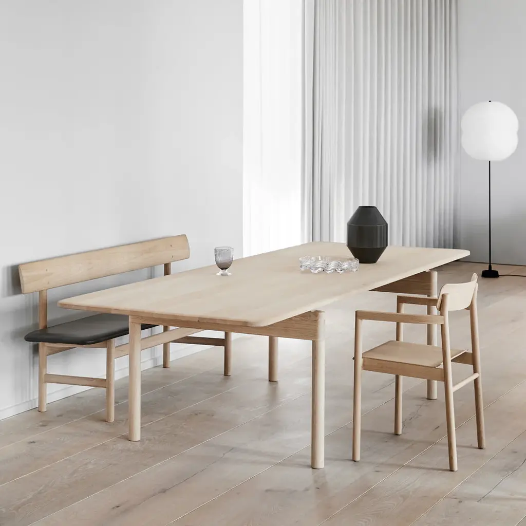 The Post Table illustrates the idea of eliminating anything extra to solely focus on the essential. A classic design expressed with modern minimalism, the table is made from solid oak, featuring loads of legroom in the wide space between the legs on either end. The table top is available in three lengths, supported by the same cylindrical legs as the Post Chair. Simplicity imbued with a sense of beauty is at the core of the Post Collection from Cecilie Manz. The name is a nod to the former home of the Royal Mail, renovated into our flagship showroom in Copenhagen. Clean, uncluttered lines are the signature traits of the Post Chair, boasting a solid wood frame that reflects our heritage of wood craftsmanship and appreciation for authentic materials. The Post Chair is upright and unassuming. The plywood seat and back are light yet sturdy, while the arms offer just enough support with a minimal use of space. Add to that the option of an upholstered seat in leather or fabric, and you have a subtle design that could easily fit into a residential setting, restaurant, café or corporate environment. Like the chairs, the Post Table's minimalist design makes it suitable for dining or meetings in corporate, private or hospitality settings. For designer Cecilie Manz, her design process starts with examining the purpose of a piece of furniture. By stripping the concept down to only what's necessary, the form that emerges from the function is pure and purposeful.