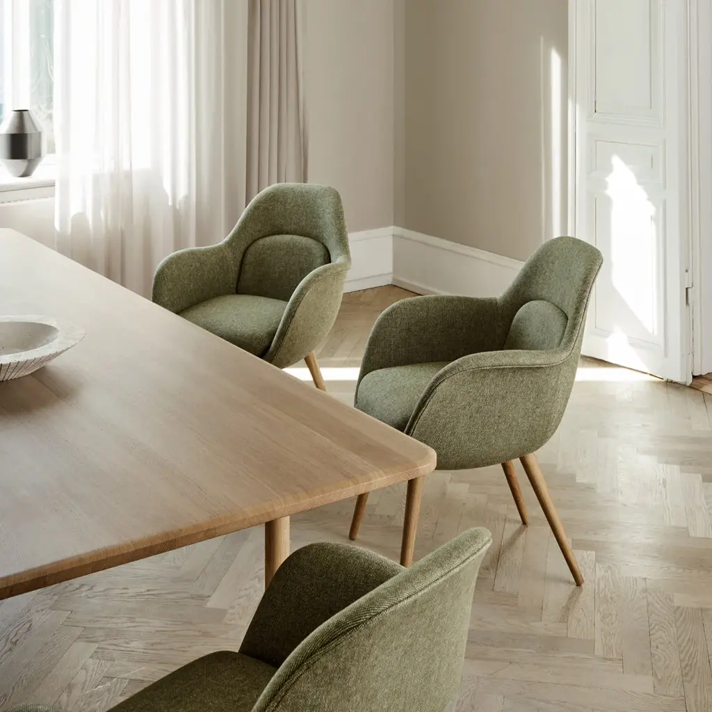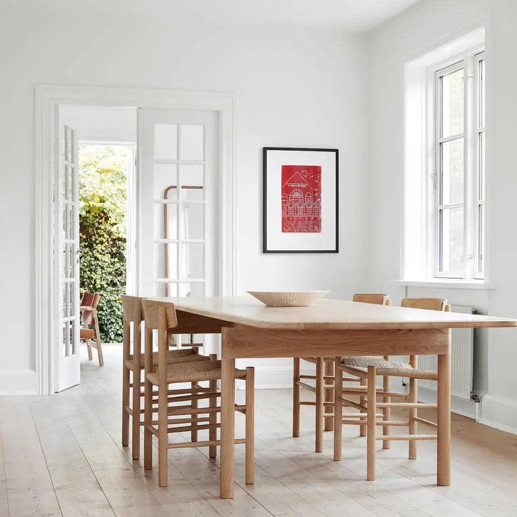 The Post Table illustrates the idea of eliminating anything extra to solely focus on the essential. A classic design expressed with modern minimalism, the table is made from solid oak, featuring loads of legroom in the wide space between the legs on either end. The table top is available in three lengths, supported by the same cylindrical legs as the Post Chair. Simplicity imbued with a sense of beauty is at the core of the Post Collection from Cecilie Manz. The name is a nod to the former home of the Royal Mail, renovated into our flagship showroom in Copenhagen. Clean, uncluttered lines are the signature traits of the Post Chair, boasting a solid wood frame that reflects our heritage of wood craftsmanship and appreciation for authentic materials. The Post Chair is upright and unassuming. The plywood seat and back are light yet sturdy, while the arms offer just enough support with a minimal use of space. Add to that the option of an upholstered seat in leather or fabric, and you have a subtle design that could easily fit into a residential setting, restaurant, café or corporate environment. Like the chairs, the Post Table's minimalist design makes it suitable for dining or meetings in corporate, private or hospitality settings. For designer Cecilie Manz, her design process starts with examining the purpose of a piece of furniture. By stripping the concept down to only what's necessary, the form that emerges from the function is pure and purposeful.