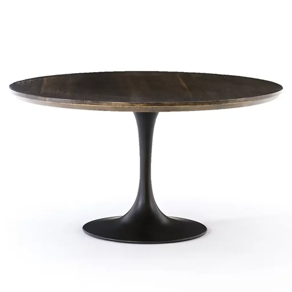 The Powell Dining Table from Four Hands sports a lovely, tapered frame that lends a slender and sophisticated touch, while the rustic modern aesthetic commands attention. With a round tabletop that invites engaging conversations, this table exudes timeless charm. Powell is crafted from fine iron for a handsome appearance. Accentuate your dining area with this sturdy furnishment so that you can enjoy thoughtful craftsmanship and delicious meals at the same time.