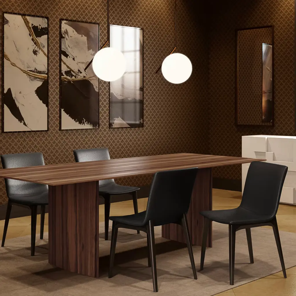 A sophisticated and essential table featuring an extremely simple and linear design. The Praia table is entirely made of veneered multi-layered Canaletto walnut, its height is 75 cm and combines with any type of environment. The rectangular top, in the same color of the legs, measures 250 x 100 cm.