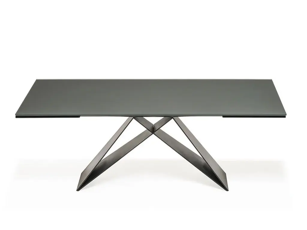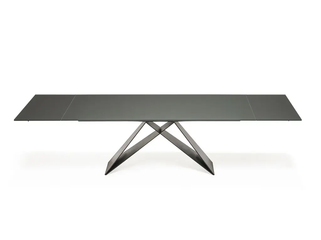 The Premier Drive dining table is full of conveniences that are incorporated into its authentic modern design. With a sculptural base that features crisscross accents, it stands out in style in a contemporary dining room. Designed by Andrea Lucatello for Cattelan Italia, the dining table features a clever extension mechanism that makes it an ideal solution for smaller dining spaces. Slide out the extensions on both sides to instantly create more space. Manufactured in Italy to ensure quality, the Premier Drive extension dining table is available in three rectangular sizes to accommodate individual needs. It features an embossed lacquered steel base in various colors. The top and extensions are in 12mm thick glass that's available in multiple finishes.