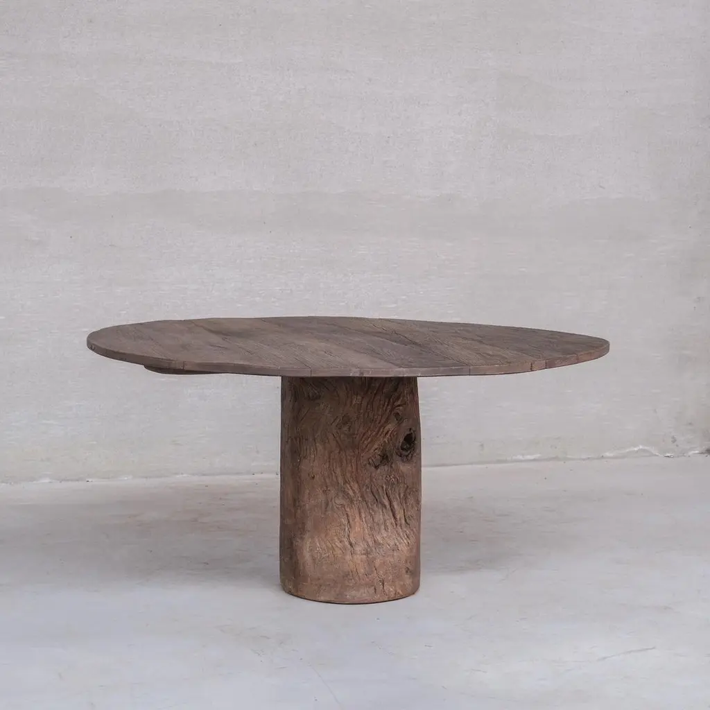 A primitive wabi-sabi style circular dining table or centre table.Belgium, c1930s.A marriage of old wood created recently by artisans in Belgium.Contemporary wooden sub structure allows the top to be removed.The base and top is from vintage wood.Internal Ref: 03/03/25/032. M/S.Location: Belgium Gallery.Dimensions: 149 Diameter x 74 H in cm.Delivery: POAWe can ship around the world. Can be transferred to our London or Belgium Gallery.