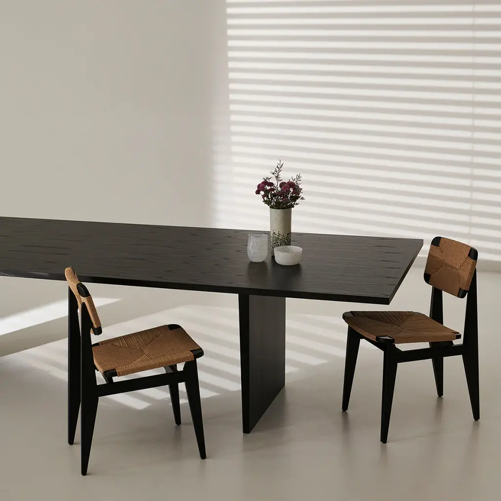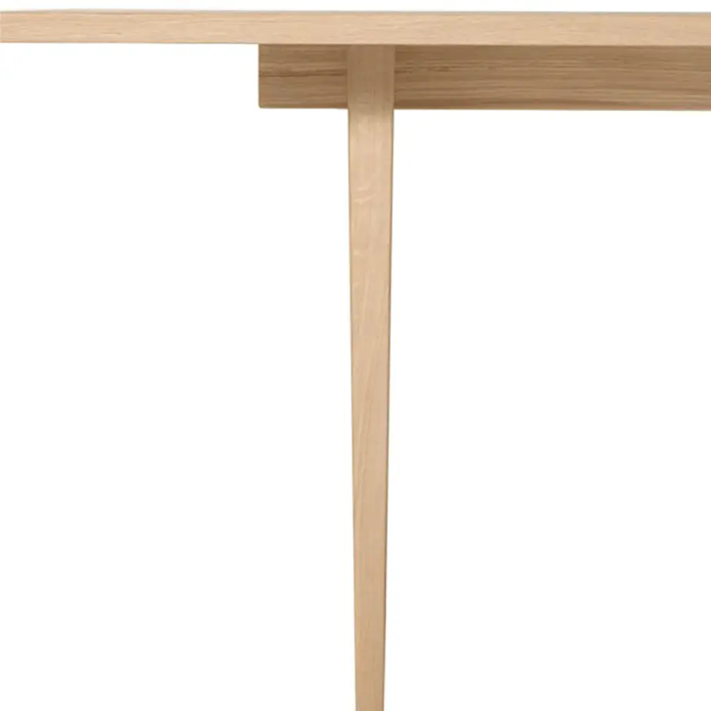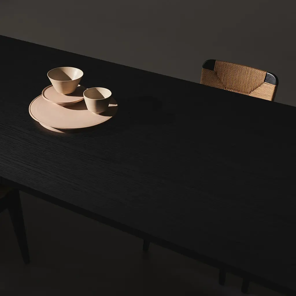 Drawing inspiration from traditional Japanese joinery, the Private Dining Table brings elegance and symmetry to your dining space. The two tapered legs of the dining table are joined by a solid wood crossbeam, creating a sturdy stance and refined appearance. Designed by Space Copenhagen, this piece has been made slightly narrower than typical dining tables to account for the social rituals of dining. With ample space, this dining table allows for a more intimate experience with your guests.