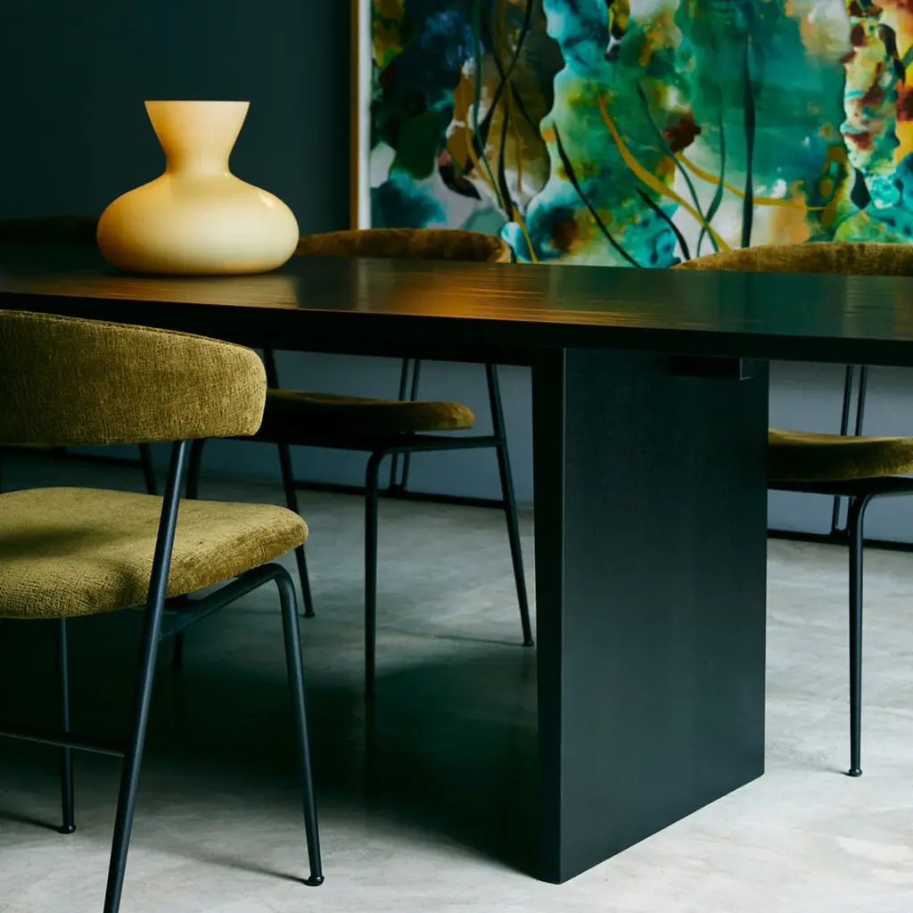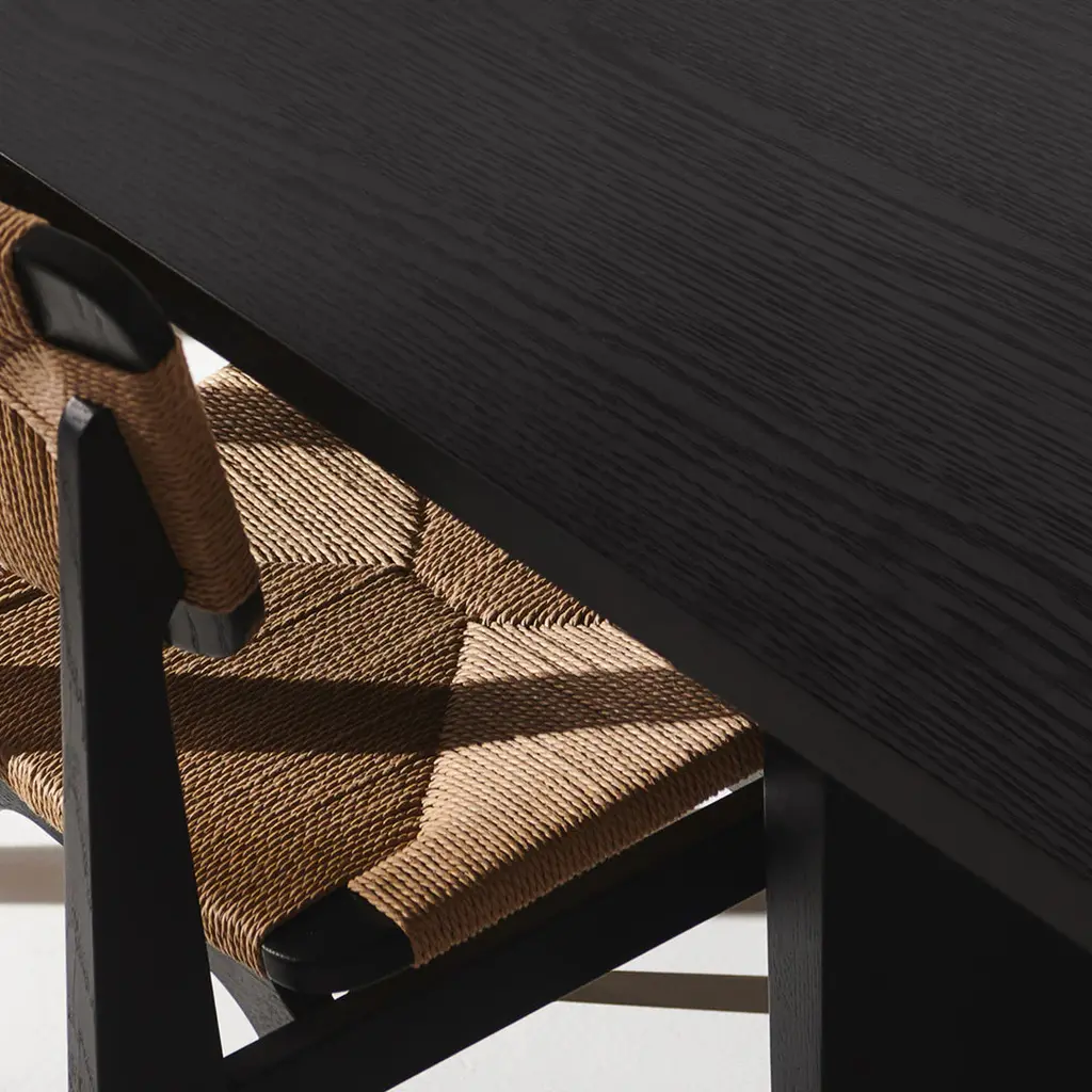 Drawing inspiration from traditional Japanese joinery, the Private Dining Table brings elegance and symmetry to your dining space. The two tapered legs of the dining table are joined by a solid wood crossbeam, creating a sturdy stance and refined appearance. Designed by Space Copenhagen, this piece has been made slightly narrower than typical dining tables to account for the social rituals of dining. With ample space, this dining table allows for a more intimate experience with your guests.