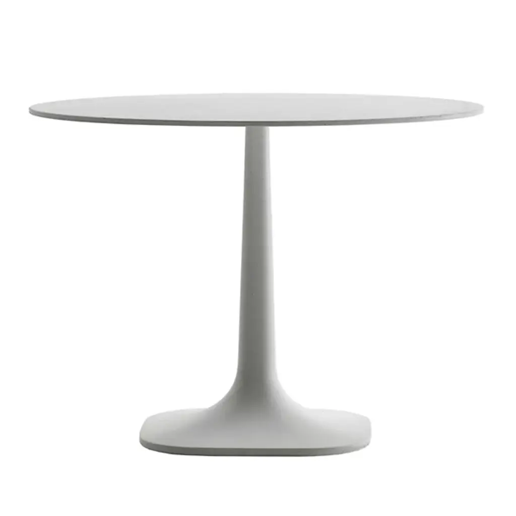 The Pushpam Round Outdoor Dining Table from B&B Italia, designed by Naoto Fukasawa, features a coupling plate of galvanized sheet. Pushpam’s ferulles are composed of thermoplastic, while its cement body comprises ultra-high-performance concrete, making it resilient to outdoor weather. A contoured base and rounded top represent the finest craftsmanship, combining Italian and contemporary styles. Your outdoor dining table brings a formal, minimalistic look to your living space, making it highly versatile.