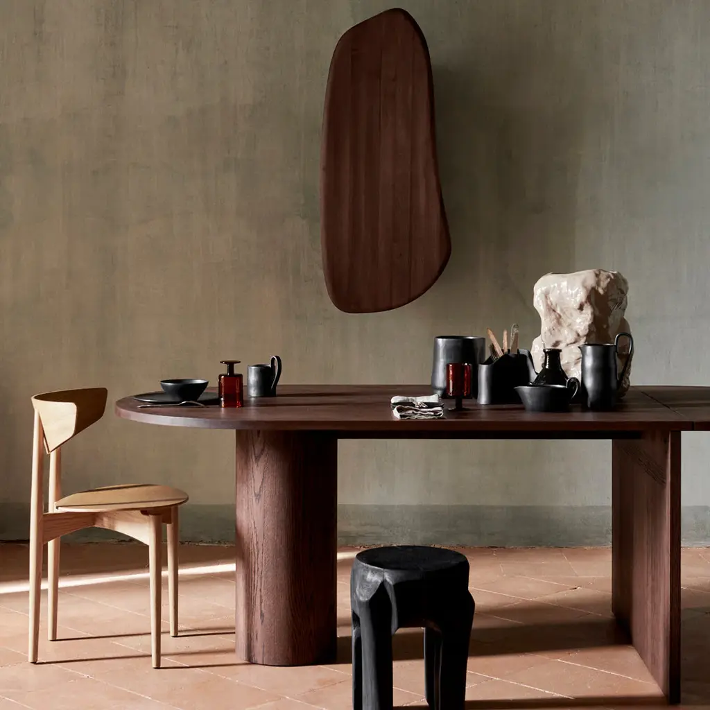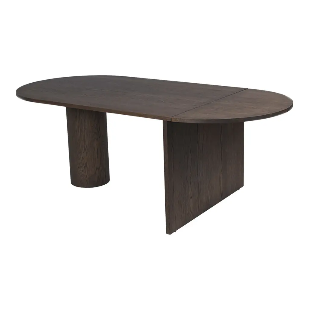 The Pylo Dining Table makes a statement in any space. Made entirely from FSC certified solid oak, the table has a unique silhouette with a stringent, sculptural expression that is artfully contrasted by the warm and inviting natural wood. Ideal for enjoying both casual weekday meals and lavish dinners, the dining table features a practical foldable leaf that, when extended, offers extra seating room for two guests.