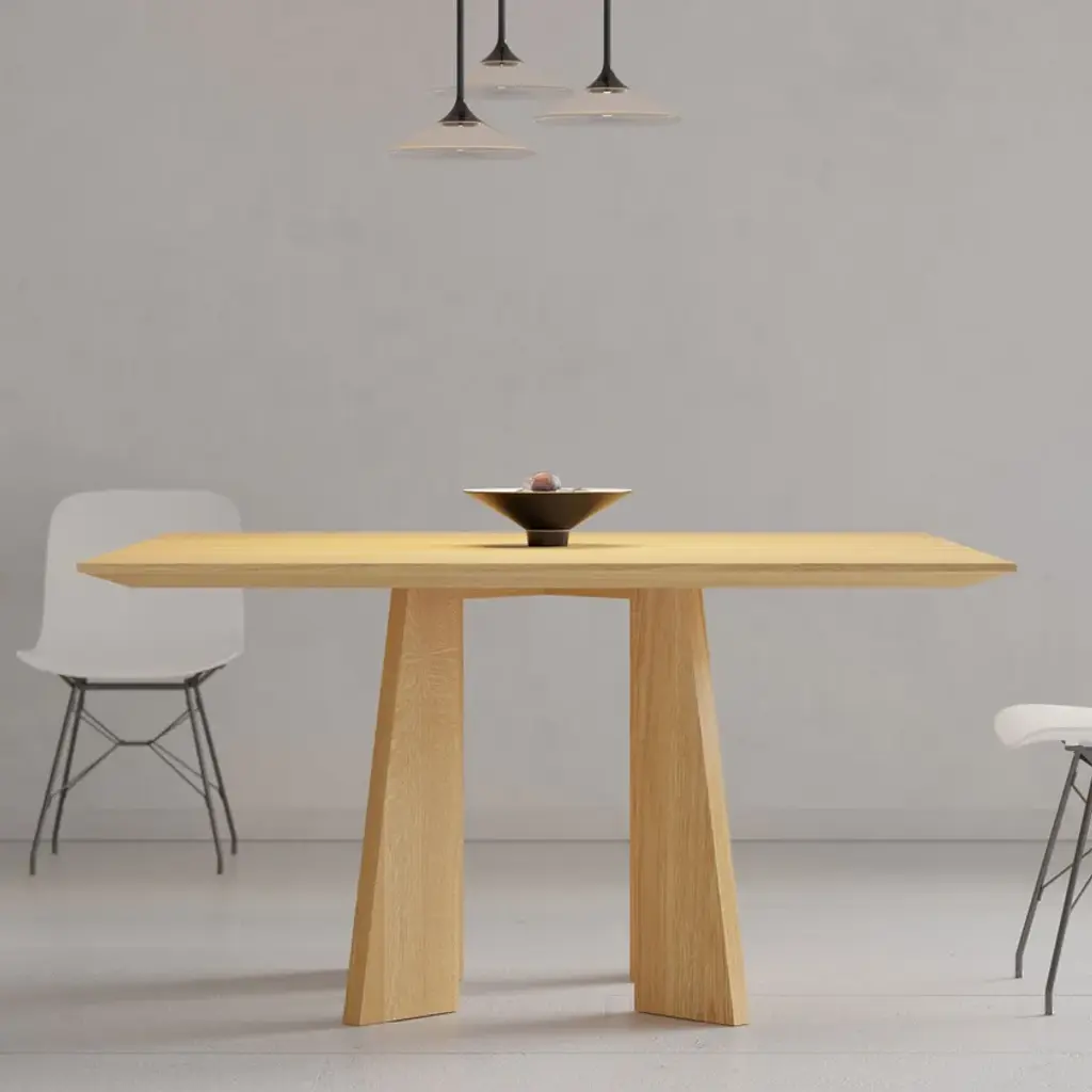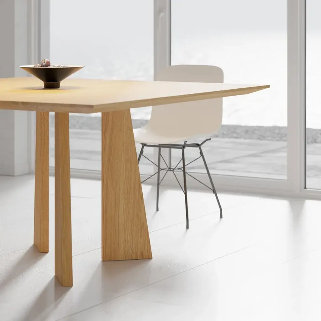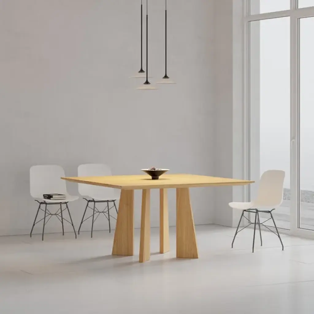 The square variant of the PYLON table brings a clear and modern geometry to the space. The narrow, flared legs create accents and give the table a unique visual dynamism. Configure your desired table or have it custom-made to your specificationsAvailable in natural-treated woods: maple, beech, core beech, ash, oak, oak with knots, cherry, walnut, and walnut with knotsTechnical Details:Standard treatment: robust surface oiled with pure herbal oil.Continuous staves: 7 - 9 cm.