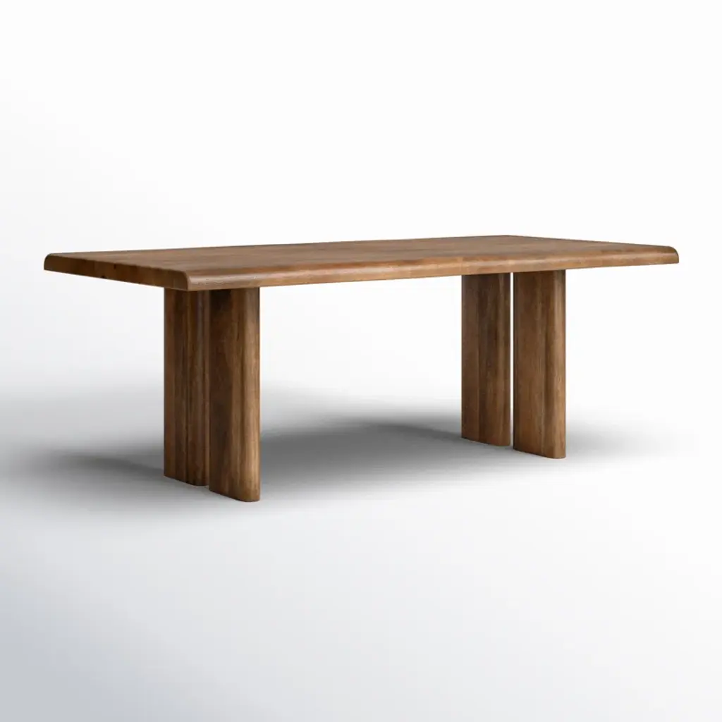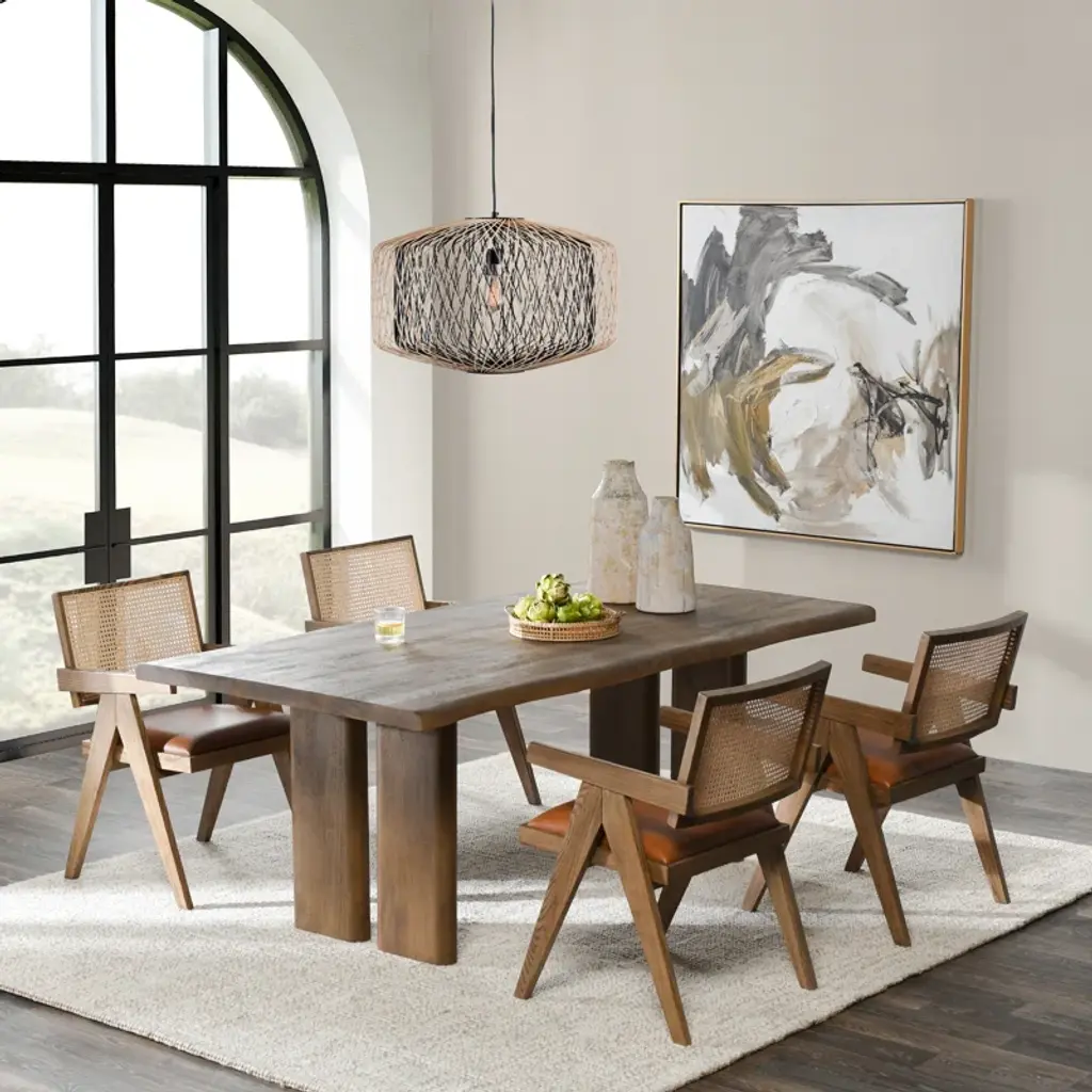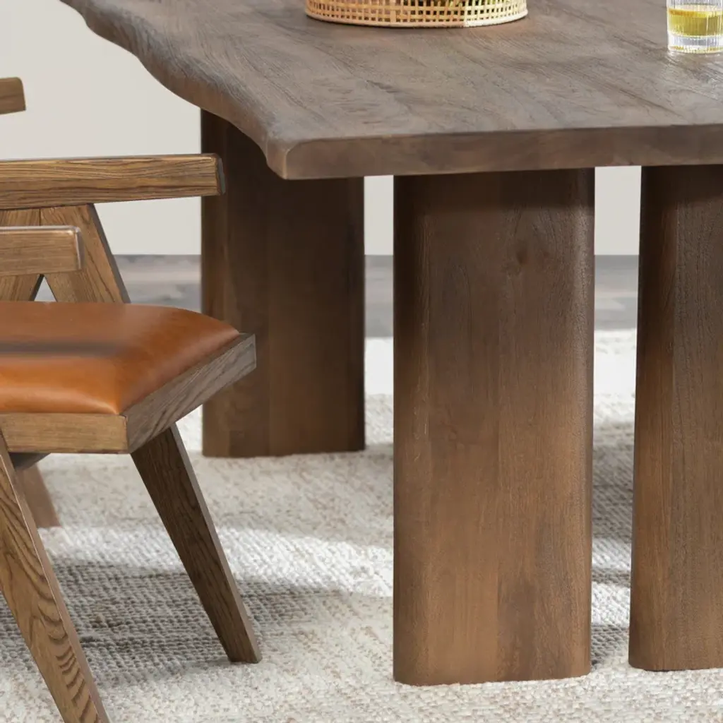 Despite its simple design and solid mango wood construction, this dining table is far from boring. A rich brown finish highlights the natural beauty of the wood while the raw edge top preserves the character of the original tree for a truly unique effect.