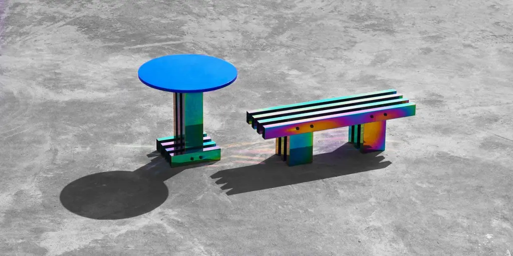 Studio Buzao’s Hot collection uses electroplated stainless steel to trigger psychedelic reactions in grass-rooted language. Called Hot, the collection includes tables, benches, a side table, and a display stand, which have been launched on a truck moving in central Shanghai during Design Shanghai 2019. Violently psychedelic contrasting colors, extend from extremely hot to extremely cold, without missing any visible light band. The hue of Hot collection presents on continuous folding surfaces like a thermal image analysis. The specular reflection, the vertical and horizontal erecting of the body, the increased various overlaps of the hue, the mutually environmentally reflected light or shadow.Material: Electroplated stainless steel, plasticProduction lead time: 3 - 4 weeks About the artist/ designer:The word “buzao” means “I don't know” in Chinese, deriving from the popular expression of the Chinese millennial generation. The name itself is a reflection of the studio’s interest in experimentation in unexpected materials and processes, often with unforeseeable results. The studio’s philosophy emphasizes the interplay between shapes, light, and environment, challenging the definition of product design by infusing their methods with the uncertainty of the artistic process.As part of a new vanguard of emerging Chinese designers, Studio Buzao is located in Pearl River Delta, a capital of manufacturing and fabrication. The studio’s proximity to these manufacturing resources has provided high-level approaches to craftsmanship, technology, and material in each of its pieces. No two projects are ever quite the same.The studio's interest is in unusual materials, placing equal weight on both the raw and processed. In the past, these have included volcanic rock, laminated glass, marble, and electroplated stainless steel. New applications of materials that already exist in the natural environment or in certain industries create an ever-evolving body of work with each new discovery.