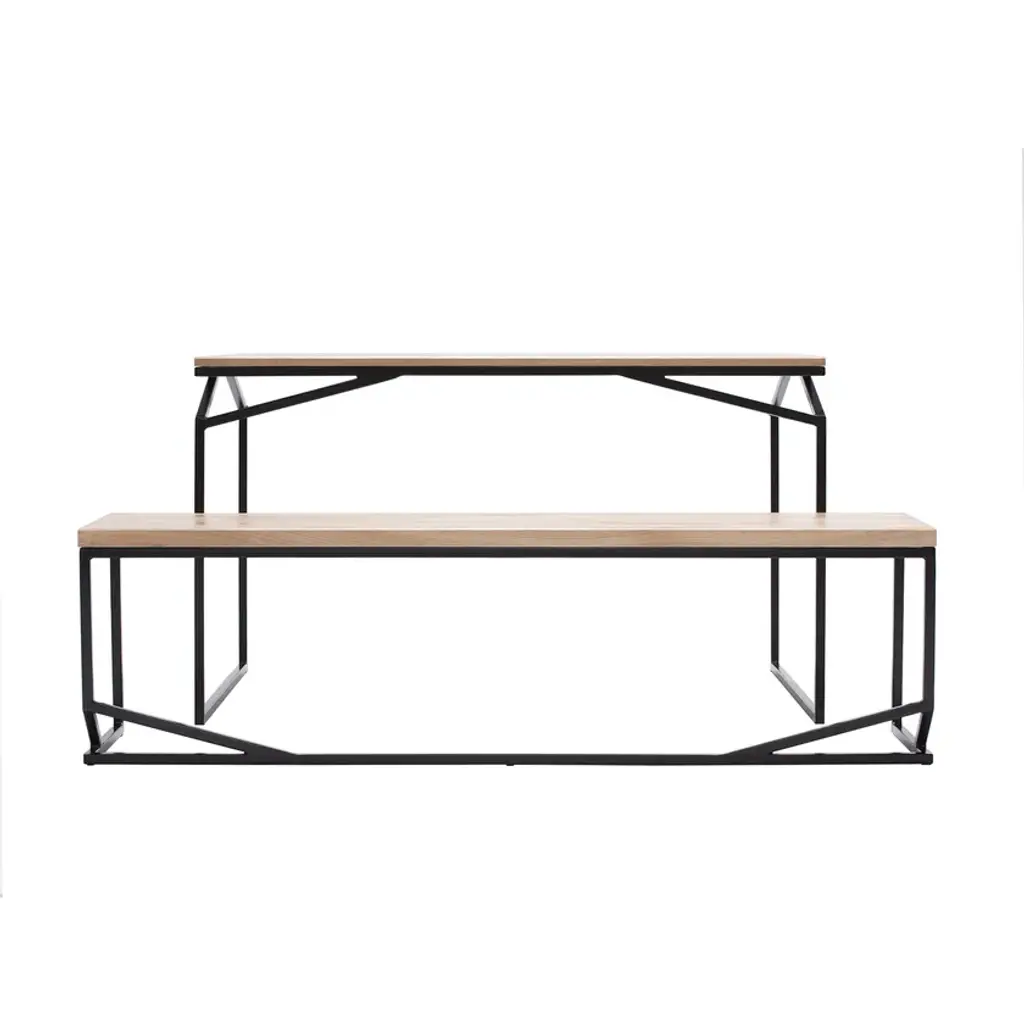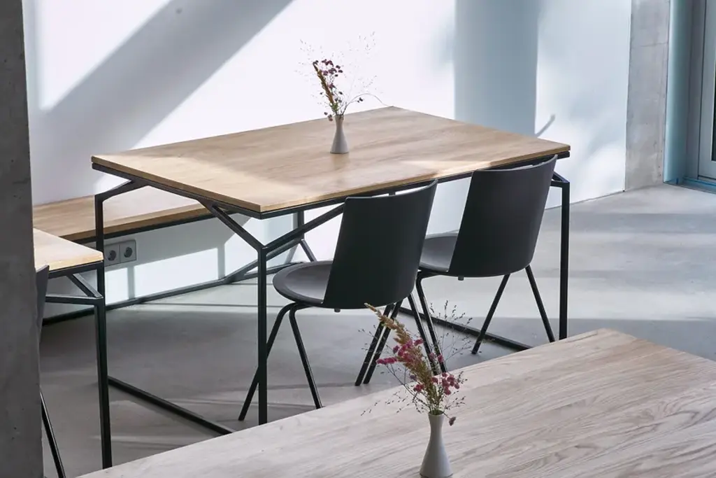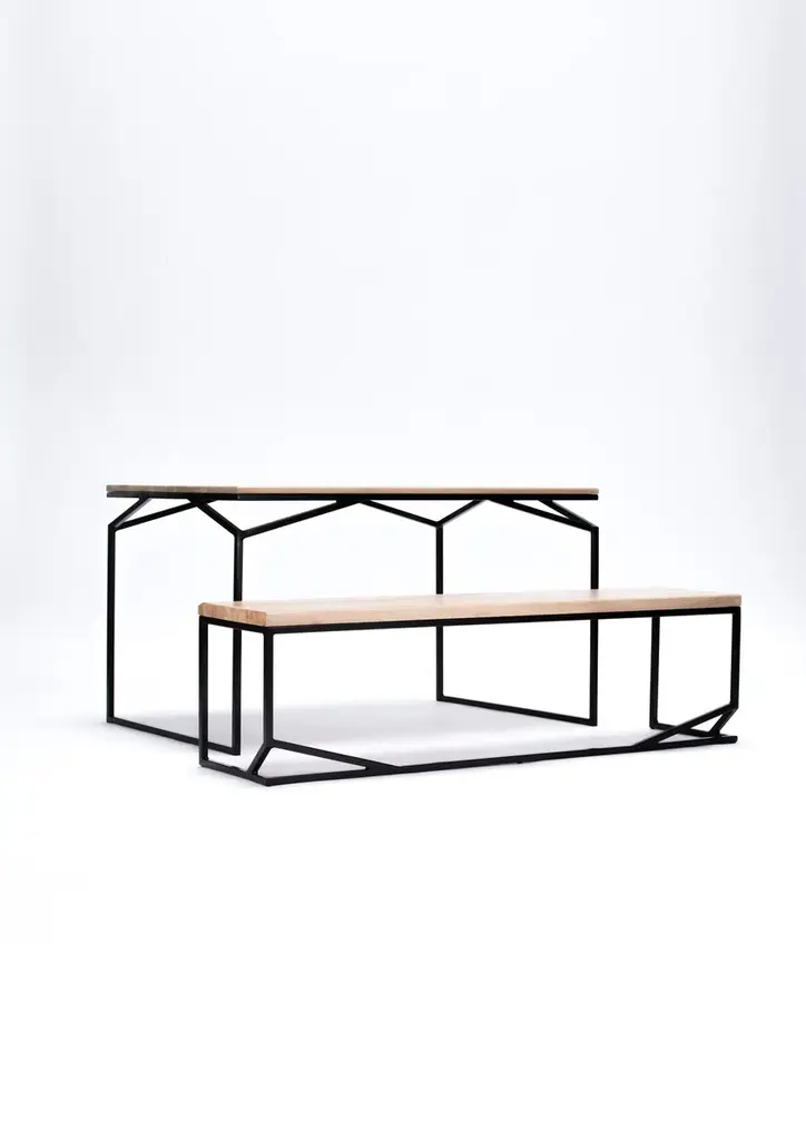 The RAK dining table is also available in white or black powdered steel however.RAK means highest standard and true contemporary Berlin design. The tabletop is 2 cm thick and is made of high-quality oak wood (up to 13 slats). The tabletop is then oiled by hand. The metal frame is completely welded together and will be delivered in on piece.RAK by MAZANLI forms part of the RAK dining table & REA bench ensemble. The combination was originally created for the gourmet restaurant "Baldon" in the Lobe Studio in Berlin, which was designed by star architect Arno Brandlhuber. The elegant, minimalist line of the bench was used to create a strong contrast to the "brutality" of the concrete which dominates the entire building complex. Following the great interest in the furniture, MAZANLI has permanently included the ensemble in its collection.The sense of weightlessness is made possible by the use of thin but highly robust square tubes (2 cm x 2 cm) made from high quality German Kruppstahl. The steel used is untreated and develops a unique patina over time, depending on the surrounding climate.