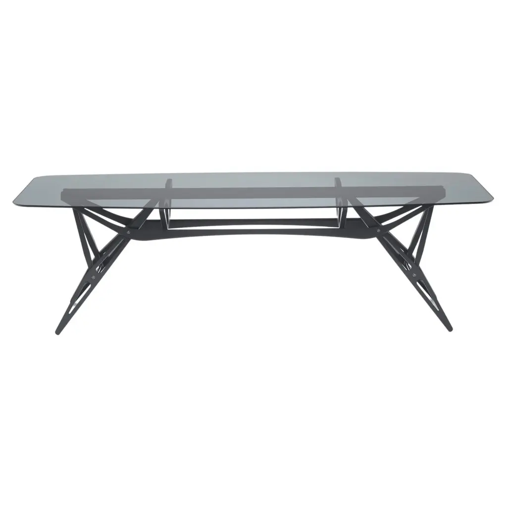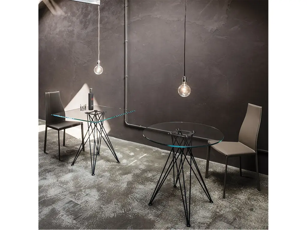 The Ralph bistro table is one that serves a great purpose, both aesthetically and from a functional perspective because of its sculptural base. Geometrically inspired, the base features crisscross accents that form different sized shapes for a one-of-a-kind touch. It's an ideal statement piece in a kitchen or small dining area. Manufactured in Italy by Cattelan Italia, the bistro table is designed to allow a great deal of customization for those who fall in love with its base. Cattelan's Ralph bistro table is available in two wood-top sizes in various finishes and five clear glass top sizes, including two square and three round ones. The base comes in an array of metal options for added customization.