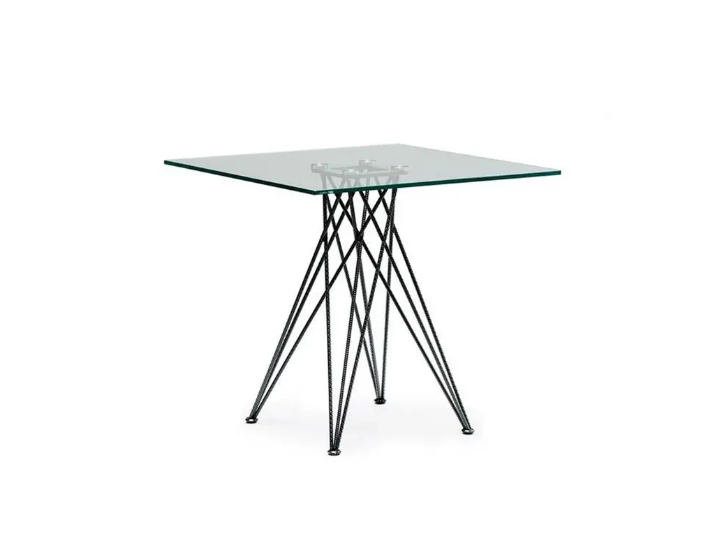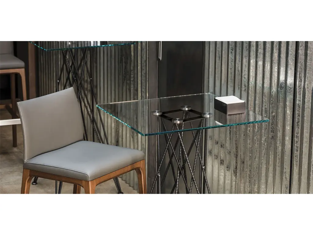 The Ralph bistro table is one that serves a great purpose, both aesthetically and from a functional perspective because of its sculptural base. Geometrically inspired, the base features crisscross accents that form different sized shapes for a one-of-a-kind touch. It's an ideal statement piece in a kitchen or small dining area. Manufactured in Italy by Cattelan Italia, the bistro table is designed to allow a great deal of customization for those who fall in love with its base. Cattelan's Ralph bistro table is available in two wood-top sizes in various finishes and five clear glass top sizes, including two square and three round ones. The base comes in an array of metal options for added customization.