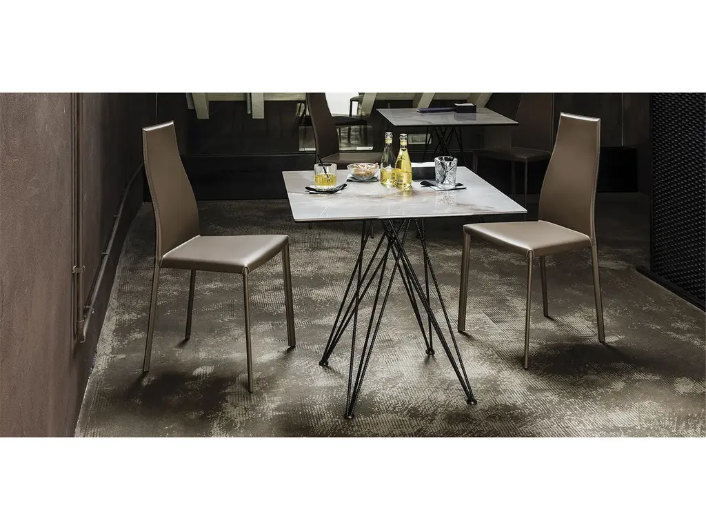 Ralph Keramik bistro table is one that serves a great purpose, both aesthetically and from a functional perspective because of its sculptural base. Geometrically inspired, the base features crisscross accents that form different sized shapes for a one-of-a-kind touch. It's an ideal statement piece in a kitchen or small dining area. Manufactured in Italy by Cattelan Italia, the bistro table is designed to allow a great deal of customization for those who fall in love with its base. Ralph Keramik bistro table is available three round and two square sizes to accommodate individual needs and preferences. The top comes in multiple luxurious ceramic finishes while the base comes in an array of metal options for added customization.