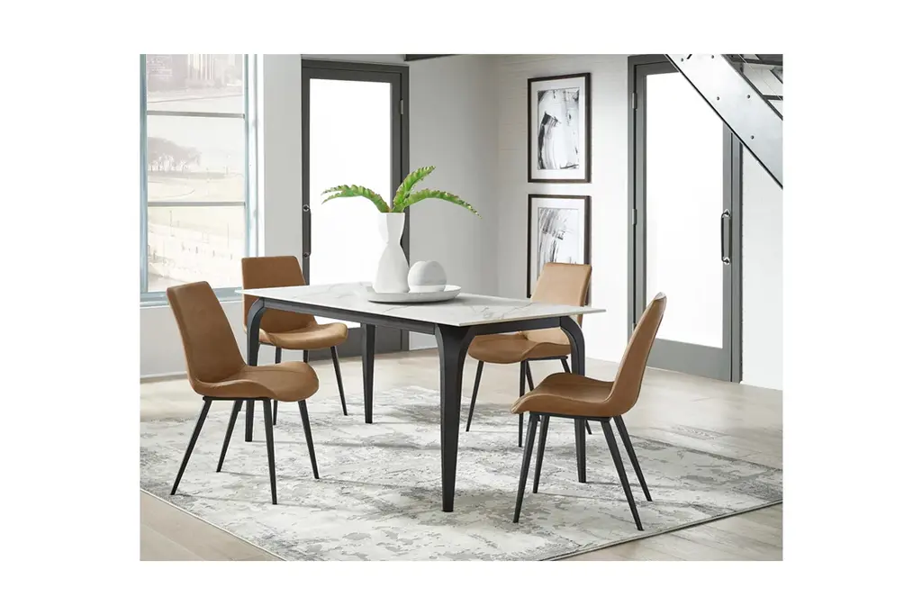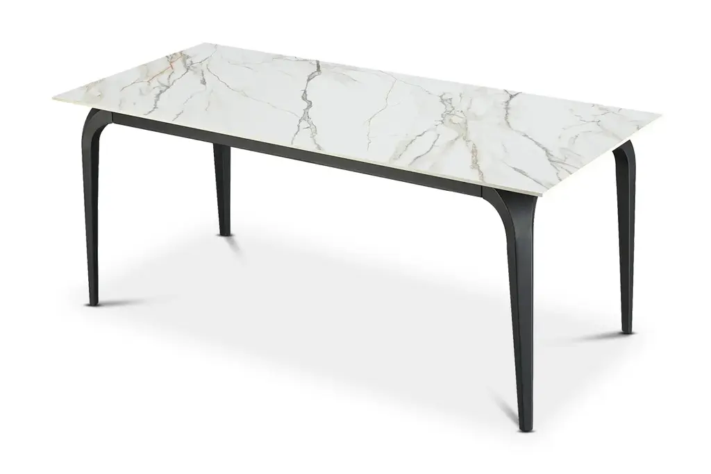 Crafted from sintered stone and tubular steel, the Ralston Dining Table boasts superior resistance to heat, abrasion, and stains, making it the ultimate choice for families or those who love to host. It sports arched, tapered metal legs with a powder-coated finish, elevating its sleek, modern design. The table has a spacious feel, comfortably sitting six people, and comes with your choice of a white or black rectangular tabletop.