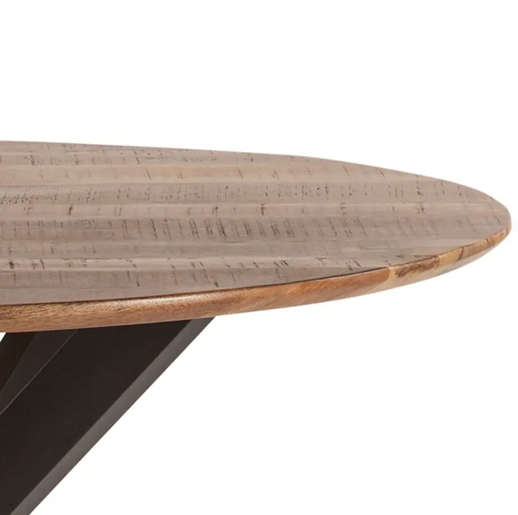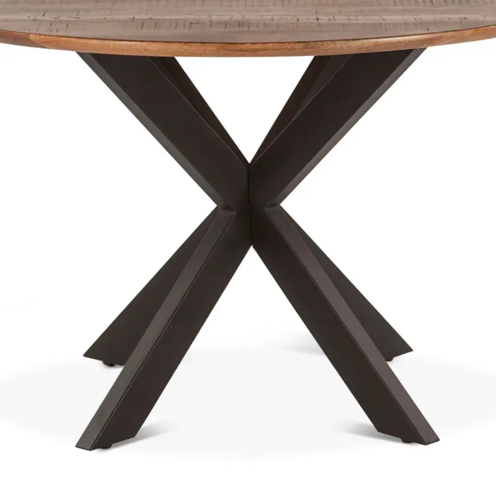 Constructed from solid mango wood and supported by angled X-shaped iron legs, the Rapallo round dining table blends contemporary elegance with natural charm, making it an excellent choice for smaller dining areas or breakfast nooks.