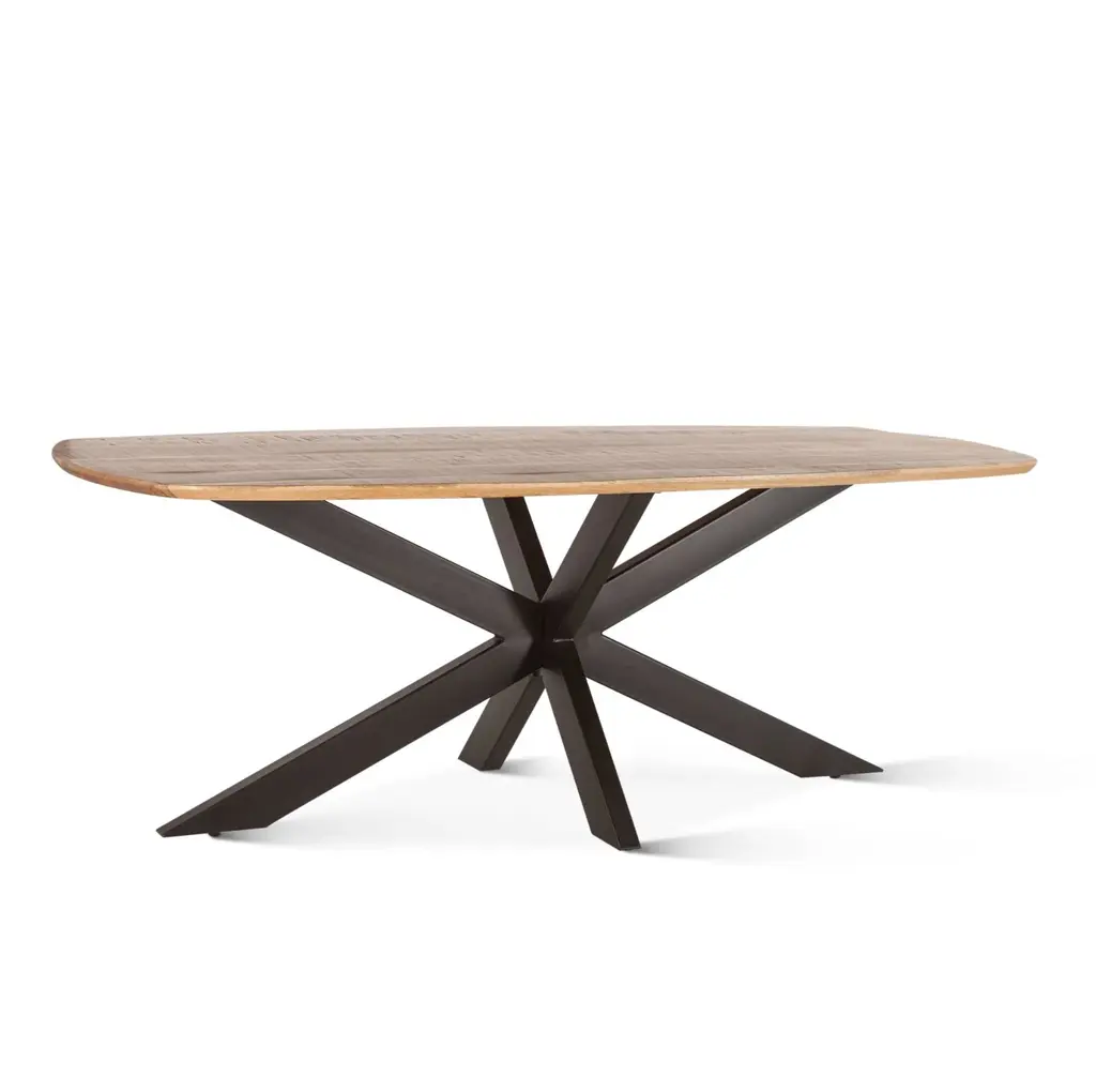 Crafted from sturdy mango wood with angled X-shaped iron legs, the Rapallo dining table combines sleek modern design with elements of natural beauty. Perfect for any dining space, this table offers a seamless blend of styles that is both inviting and contemporary.