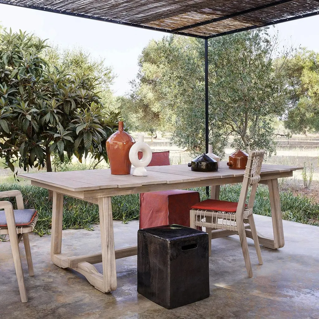 Dining Table Raw Teak with base structure in natural teak in washed finish. With top made of concrete slats in woodeffects. Made for indoor and outdoor use.Also available on request in:L200xD100xH74cm, price 6950,00€.