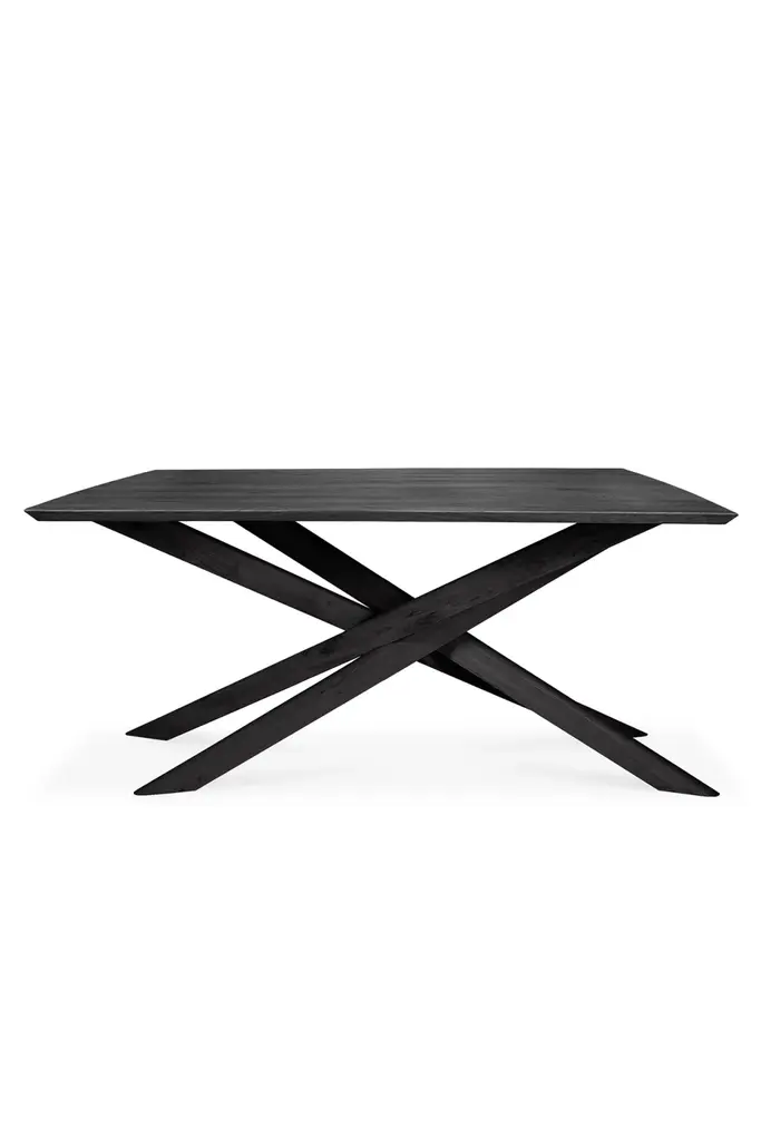 The Rectangular Black Oak Dining Table by Ethnicraft is a captivating addition to any living space. Crafted from black-tainted oak with a varnished finish, this Mikado table exudes timeless charm. Its sculptural character is the result of a quest to find a balance between functionality and stability. The legs interlock like a well-thought-out puzzle, arranged under a solid rectangular top. This piece showcases modern craftsmanship and adds an element of intrigue to your home.