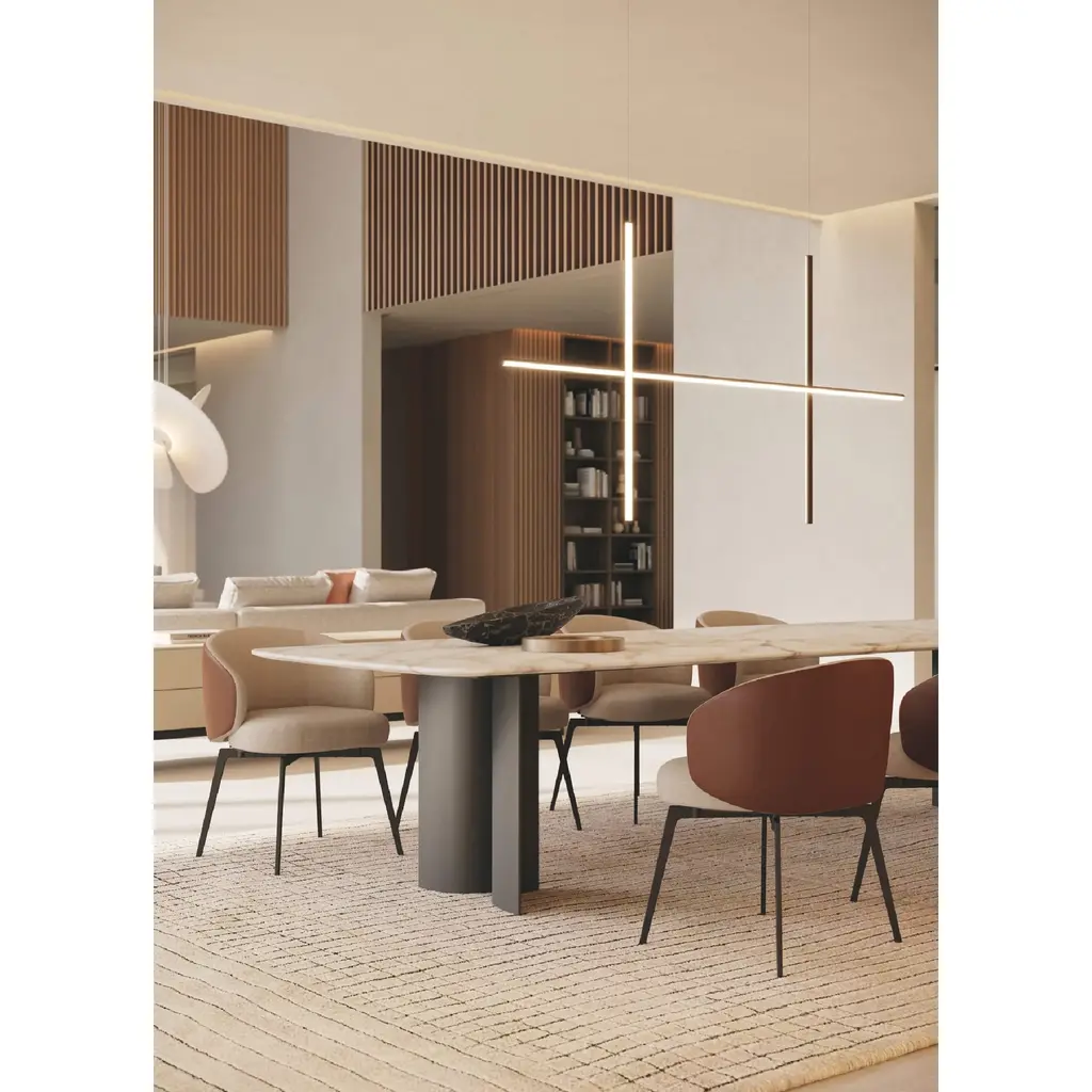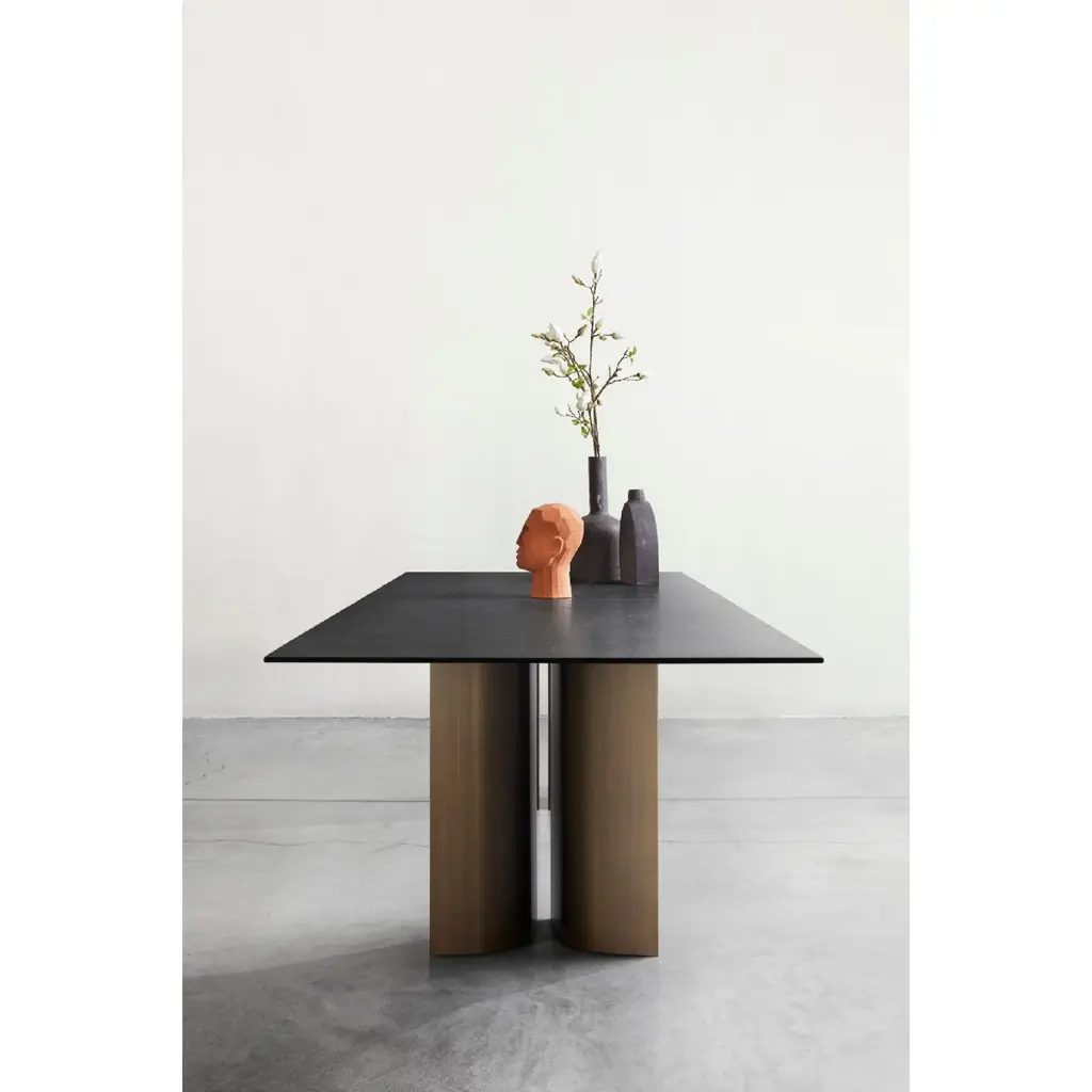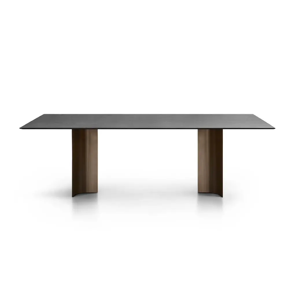 Rectangular Gullwing Table by Lema is the product of extensive research by Gabriele and Oscar Buratti into the “complex simplicity" of curved lines and the rich presence they bring to a space. The project is characterized by the expert combination of different materials and the sculptural lines of the base, which interact with the light and the surrounding space to create a never-ending dance of shadows, reflections, and angles. There is a bold feel to the paired, curved legs – as elegant as wings – which serve as the base for Gullwing in its various guises.