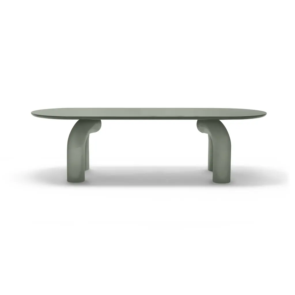 Introducing the ELEPHANTE rectangular table - a symbol of refined dining. With a sturdy polyurethane base and wooden top, its thick design exudes elegance and stability. Its soft curved legs offer an exquisite touch, making it a perfect fit in any setting - from classic to modern. Available in a range of finishes, including matte and glossy lacquer, in luxurious colors such as white, black, gray, and ivory. Elevate your dining experience with this monumental and poetic piece.
